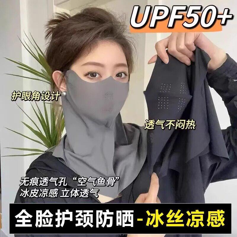 防晒面罩女防紫外线夏季开车骑行透气护颈遮脖子遮阳全脸冰丝口罩 - 和诺日用家居商城
