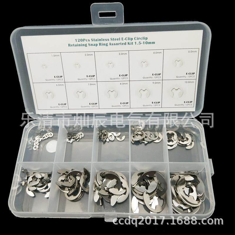 E型开口卡簧 120pcs盒装金属卡簧卡圈垫片 304不锈钢轴用挡圈介子 - 永宁配件工厂