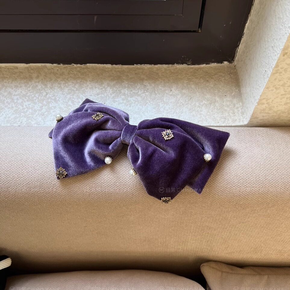 且茉~好爱的糯紫~复古精致丝绒蝴蝶结发夹新款 - 且茉Chmo Vane 手作饰品