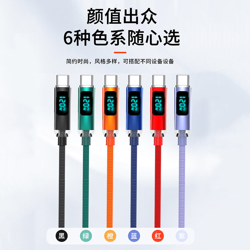 佐梵希晶耀智能数显120W超级快充编织6A闪充数据线适用苹果iPhone16华为双头typec小米15OPPO荣耀vivo手机usb - 佐梵希旗舰店