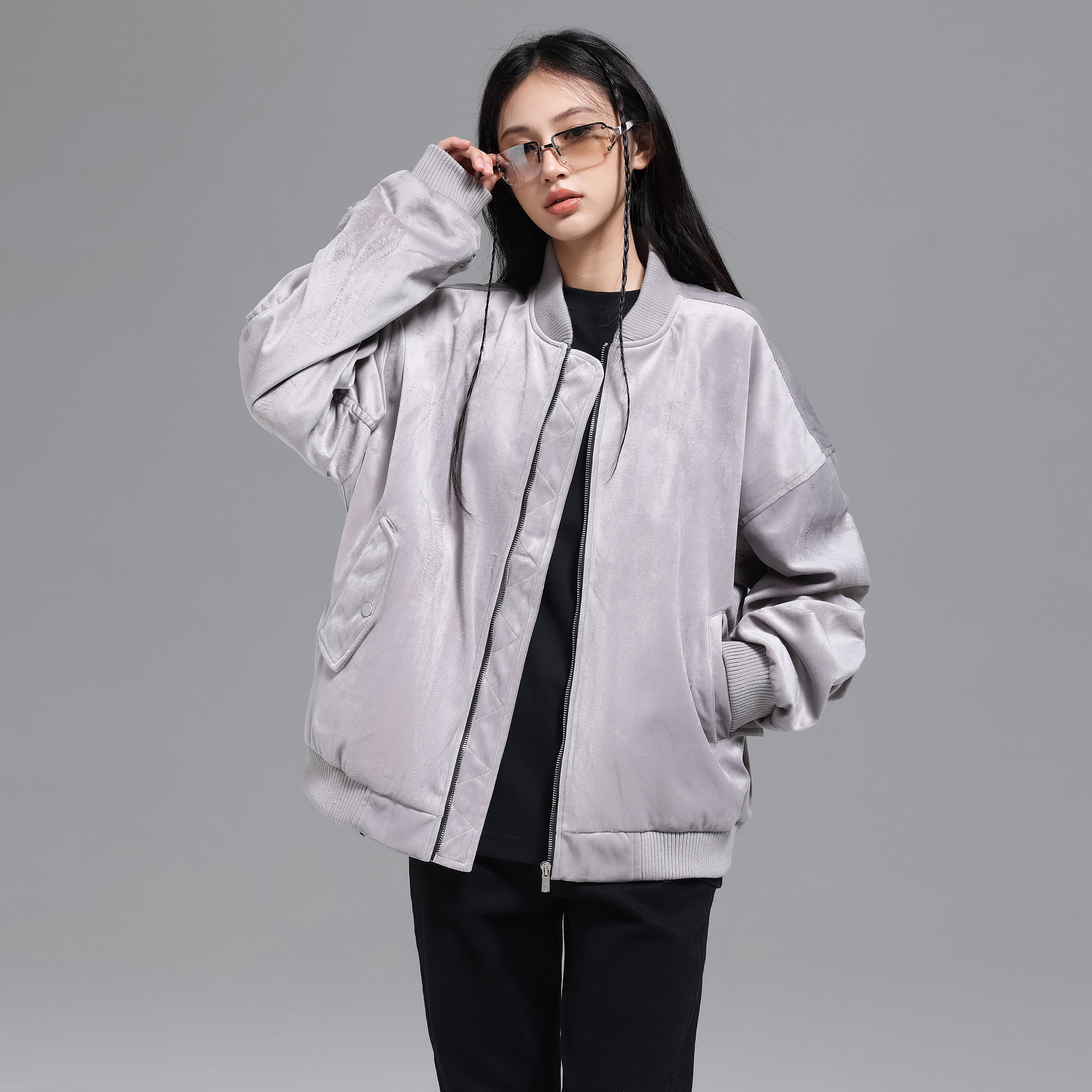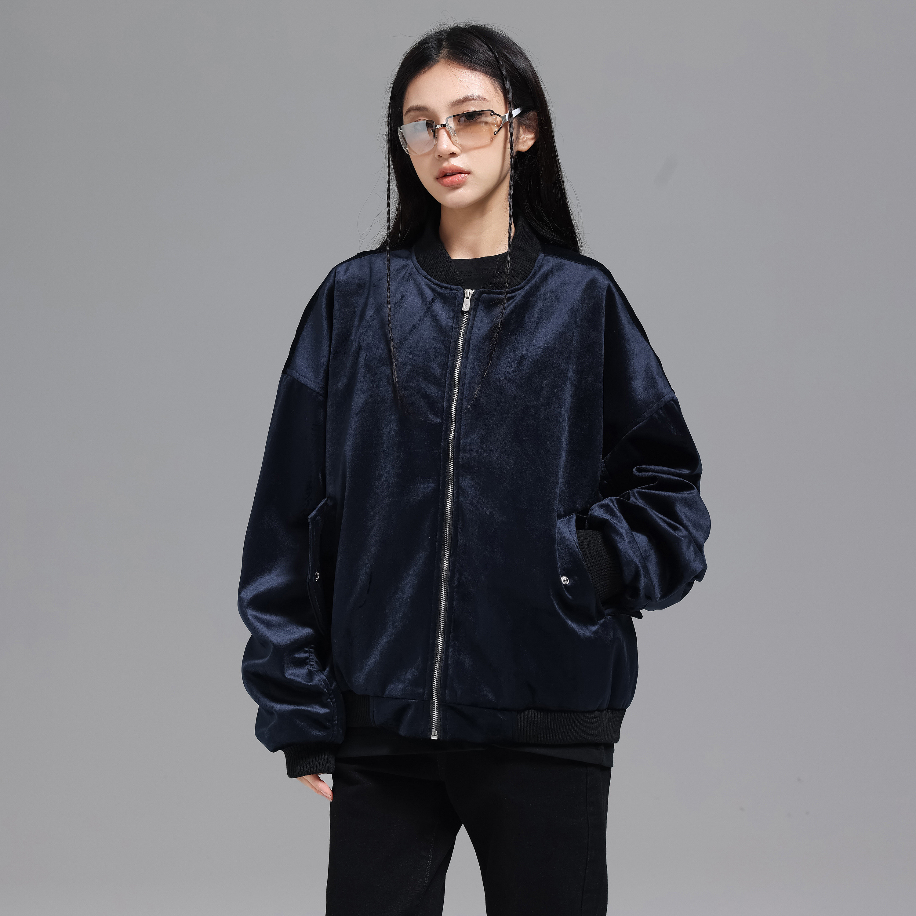 您的位置:安康生态农业开发平台  >   >  UNKNOWTAL 丝绒手臂褶皱拉链飞行夹克宽松外套国潮牌Clean fit