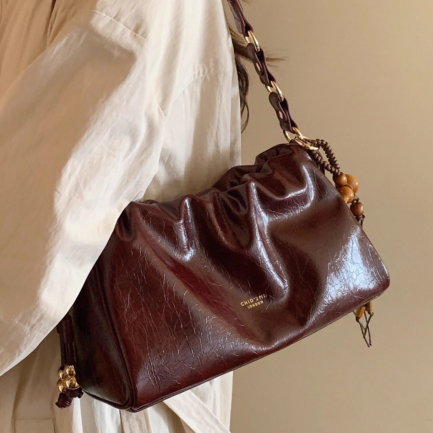 南风Chio2nd 暗夜蔷薇托特包包女油蜡皮褶皱小众不撞款单肩斜挎包 - 南风小铺OL轻复古女包