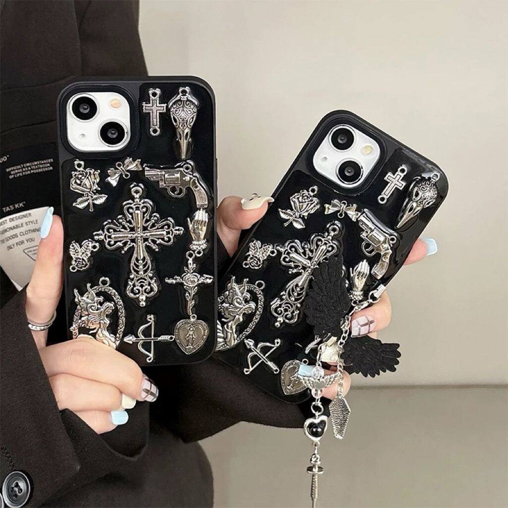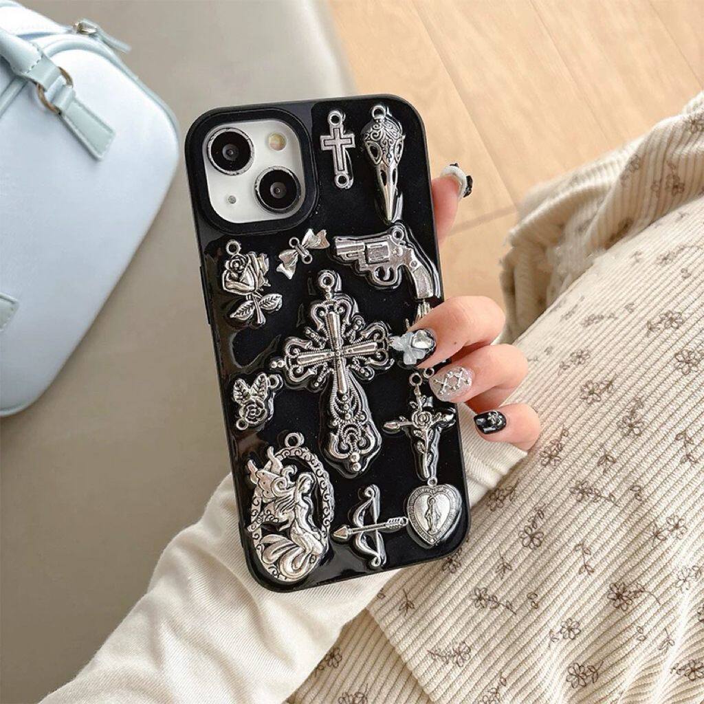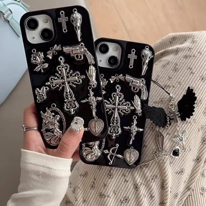 复古暗黑哥特风十字架适用苹果17promax手机壳iPhone16 15pro滴胶iPhone14 13mini全包12pro保护套11防摔Air - summer小花数码