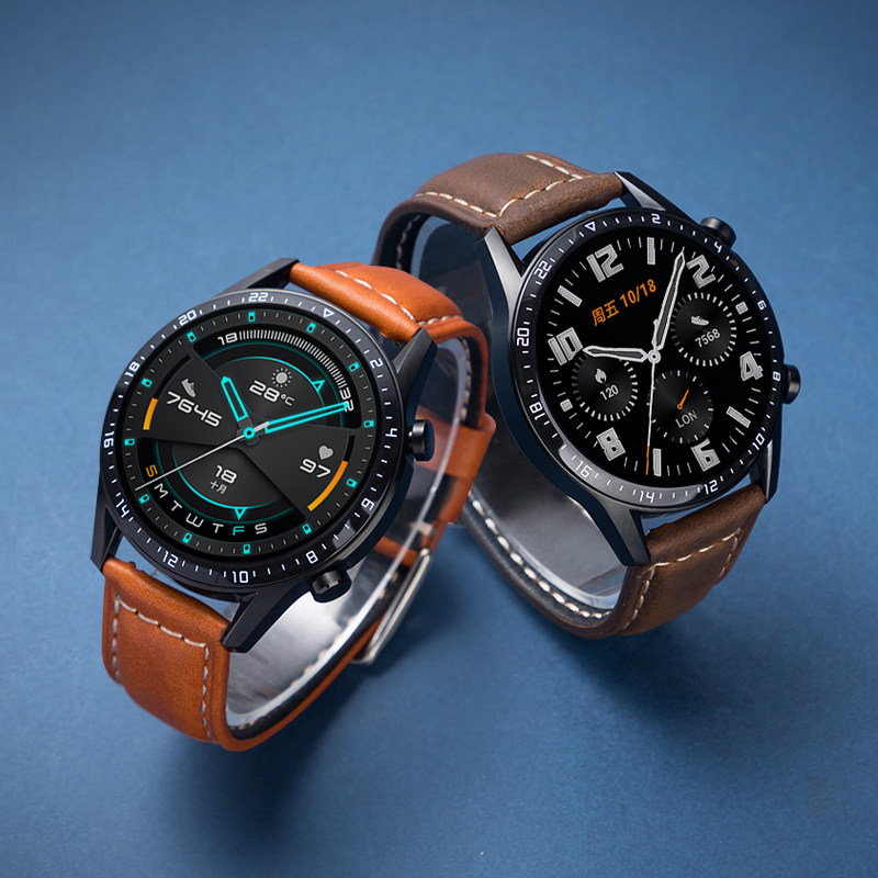 适用华为GT2表带GT4/GT3手表GT1男Watchgt3荣耀Magic2智能GT运动Watch3男款2E真皮Pro牛皮新款22/20复古46/42 - 鸣铎旗舰店
