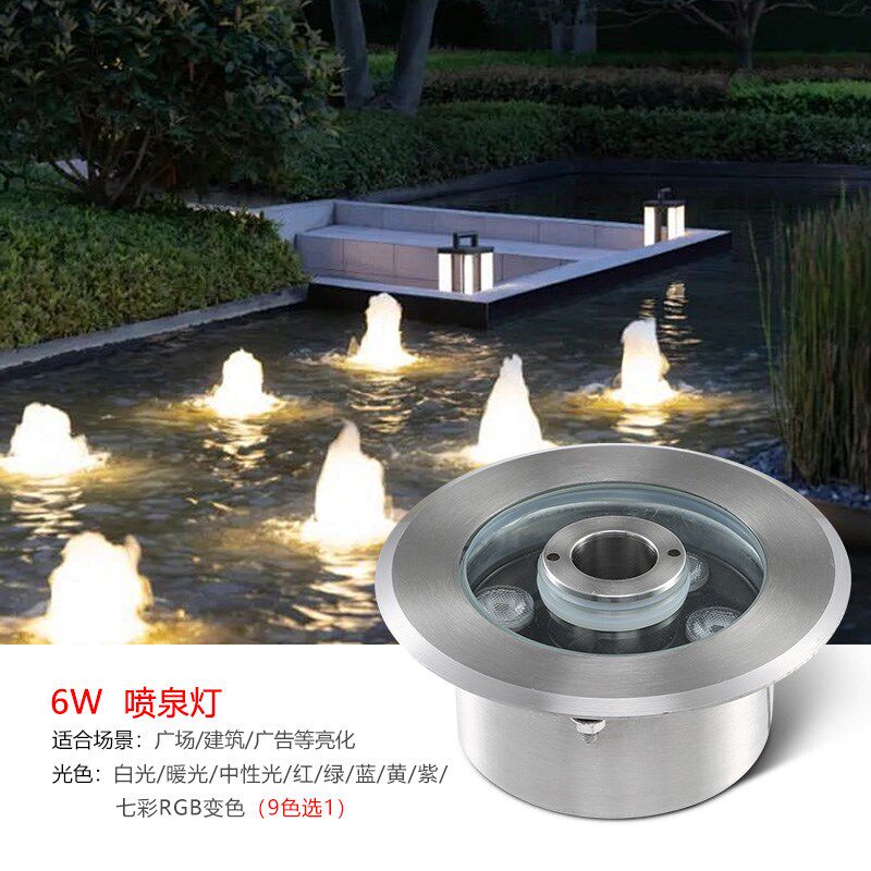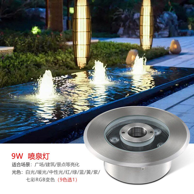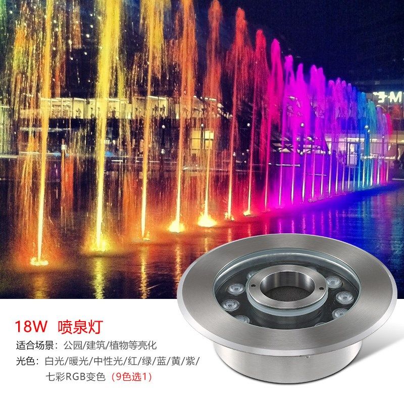 led喷泉灯涌泉灯防水七彩水底灯水池鱼池灯嵌入式全不锈钢喷泉灯 - 瓷胎薄商城