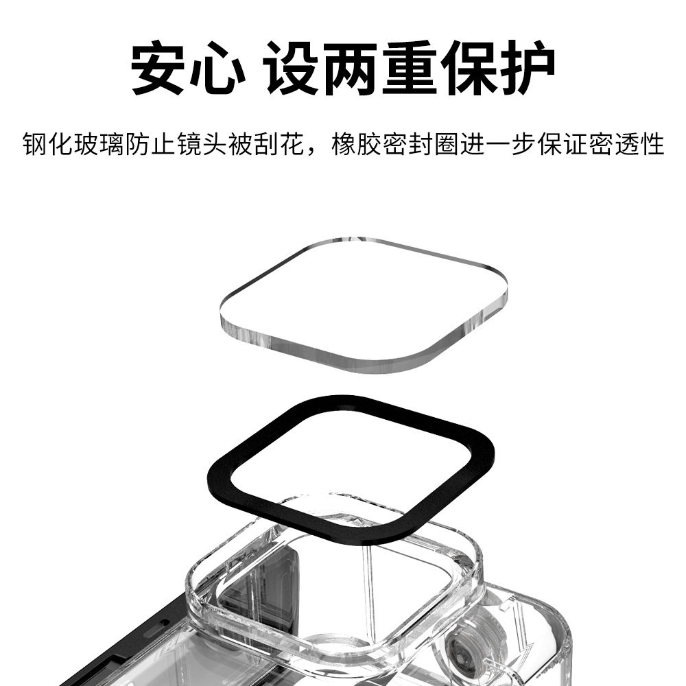 适用Gopro 12/11/10/9相机防水壳潜水保护壳免拆镜头45米防水配件 - JSR易图