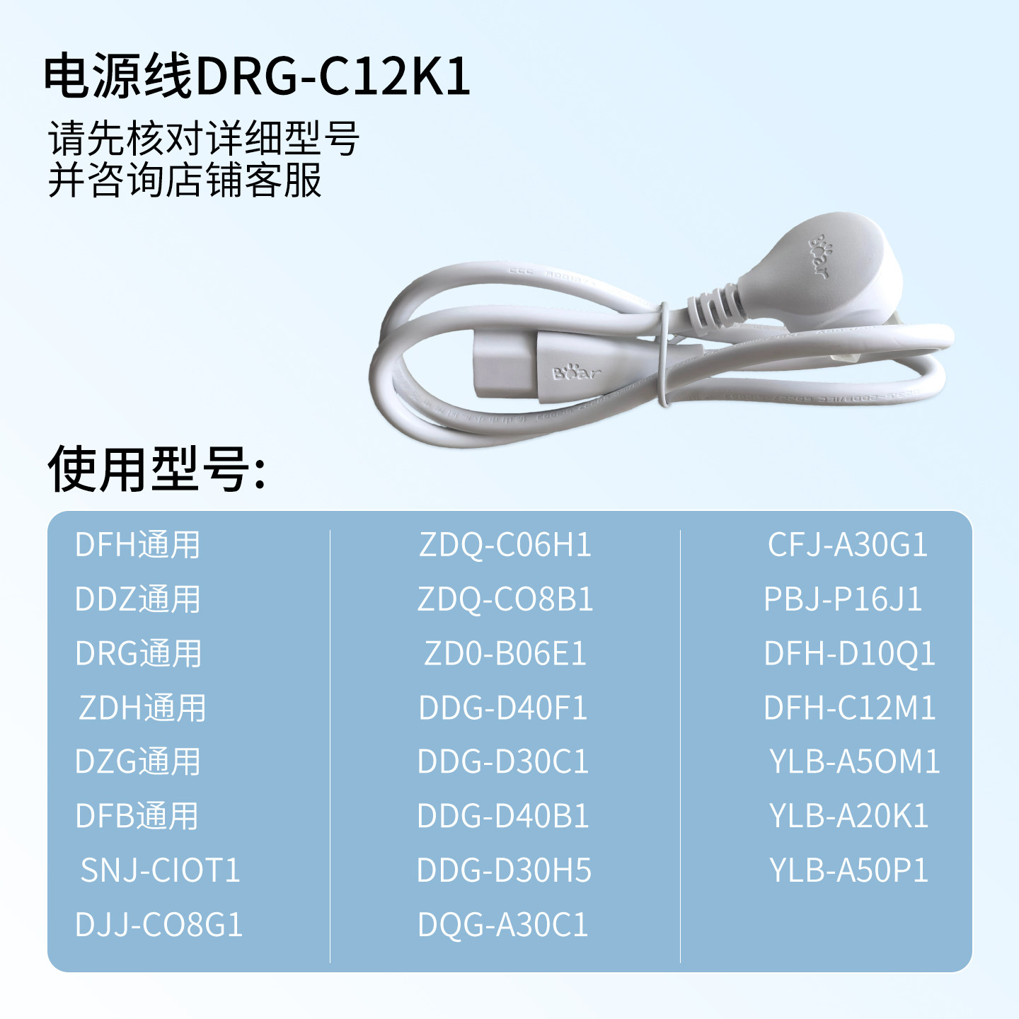 小熊电饭盒电饭煲电源线炖盅蒸锅C60A1电热锅DRG-C12K1插头S2358 - 小熊创达专卖店