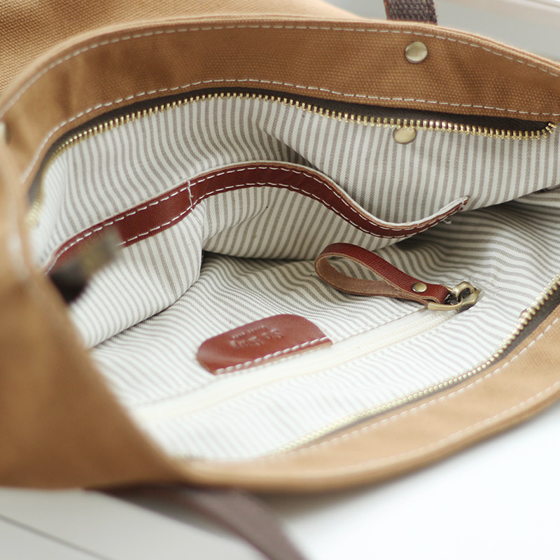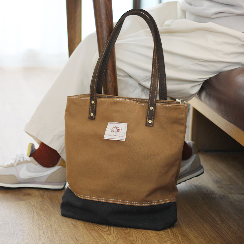 sobag春季日系竖款通勤帆布包包女大容量拉链复古中性单肩托特包 - SoBag手作布包