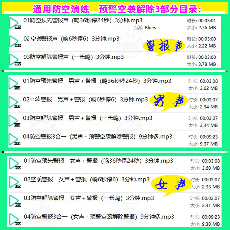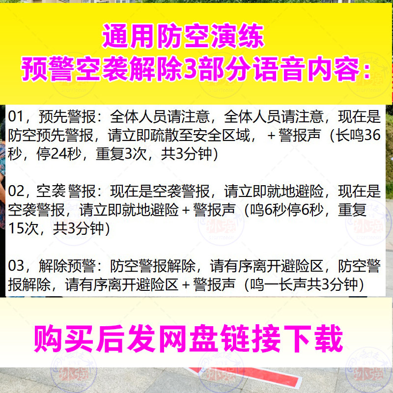 通用防空警报声音语音播报mp3演练预先警报空袭解除完整版警鸣声 - 振宇教学 语音定制