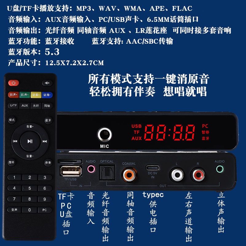 蓝牙5.3音频接收器K歌光纤同轴输出电视机投影仪功放机音响转无线 - 壹嘉数码科技