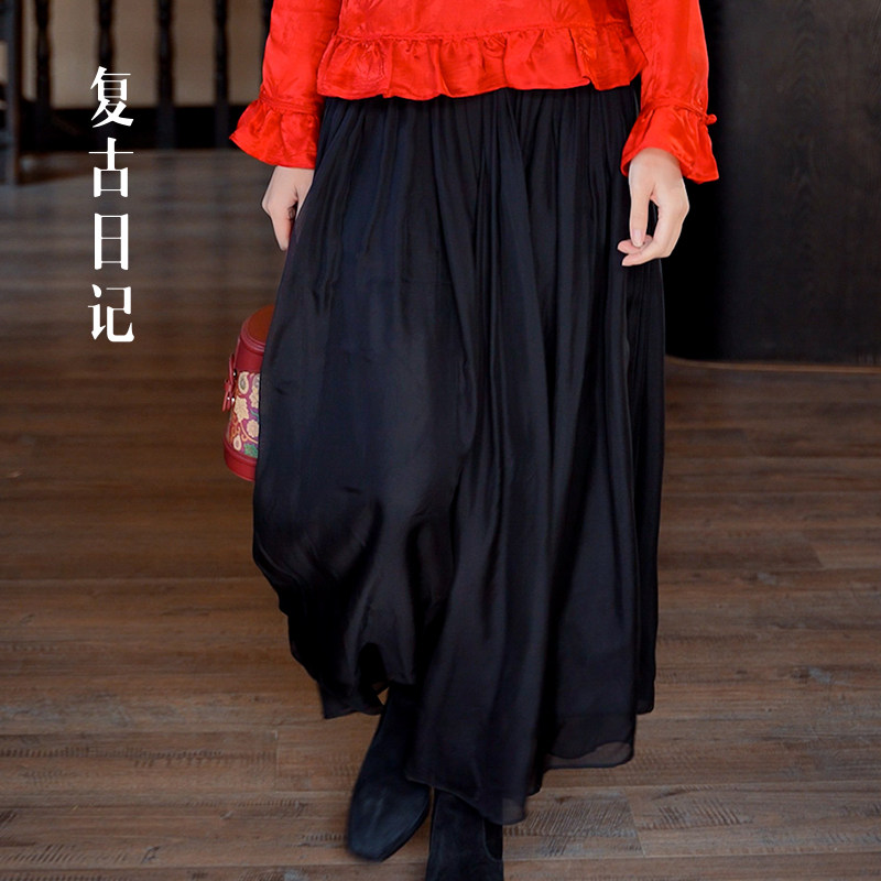 复古日记“一马当先”真丝雪纺国风仙气薄雾四季轻纱半裙2F1Q5823 - 复古日记旗舰店