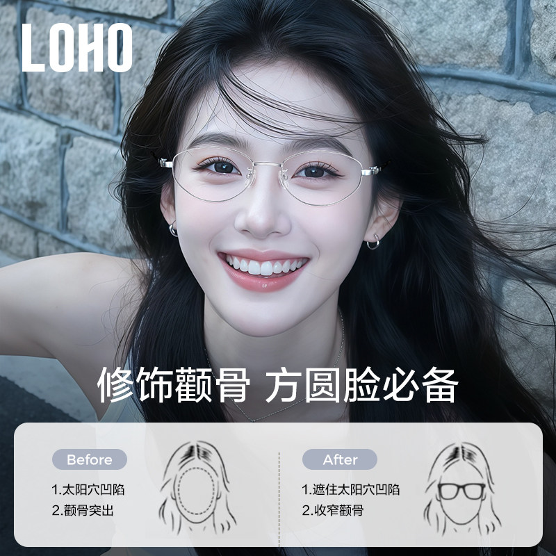 LOHO猫眼书呆子眼镜近视可配度数女高智感超轻钛架金丝小框26新款 - loho眼镜生活旗舰店