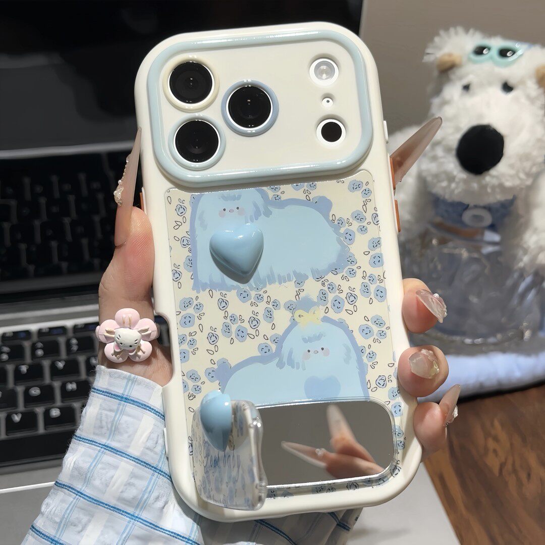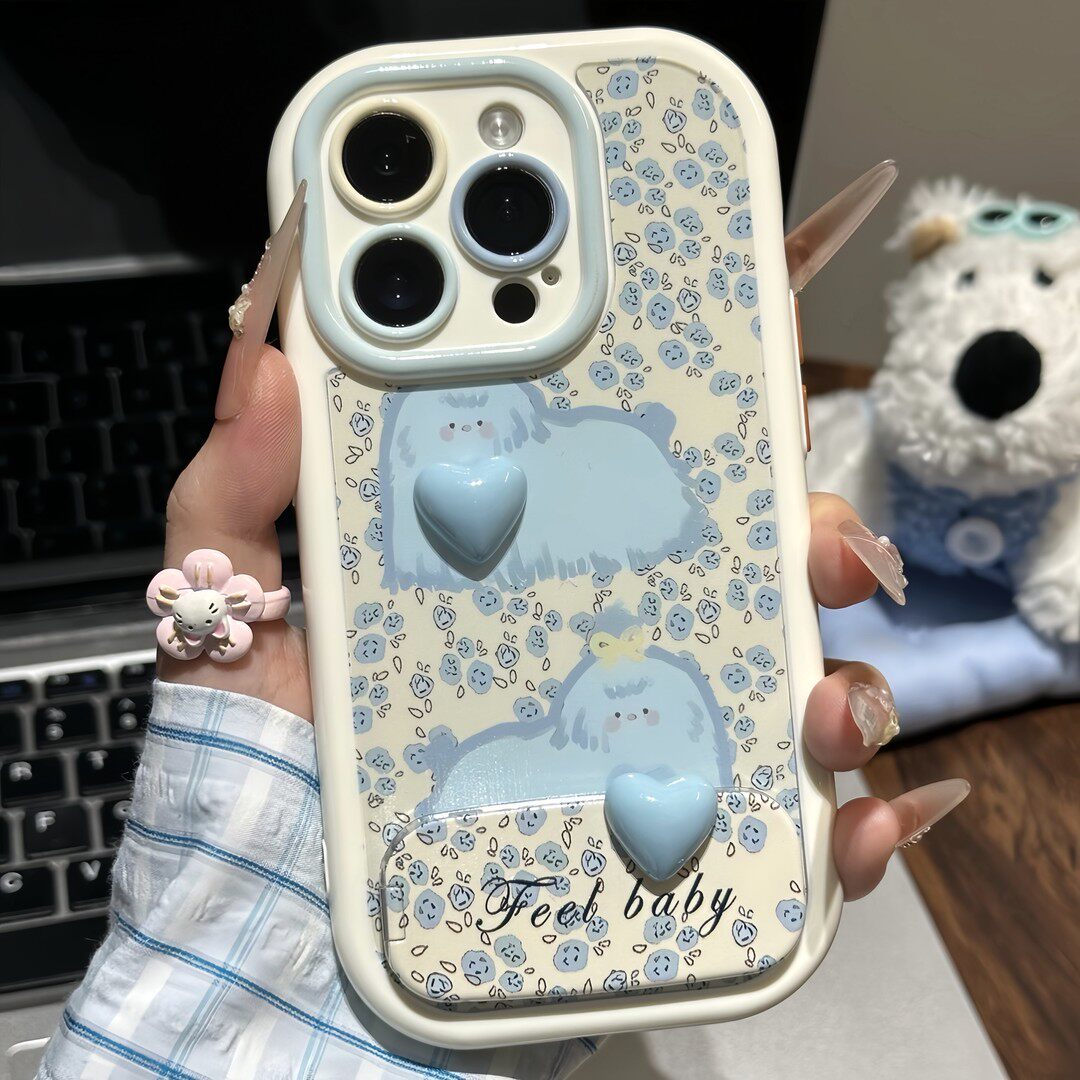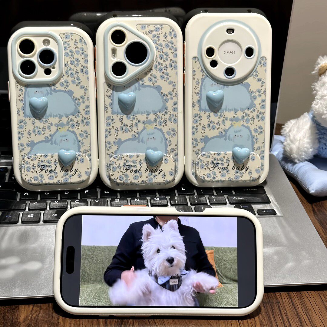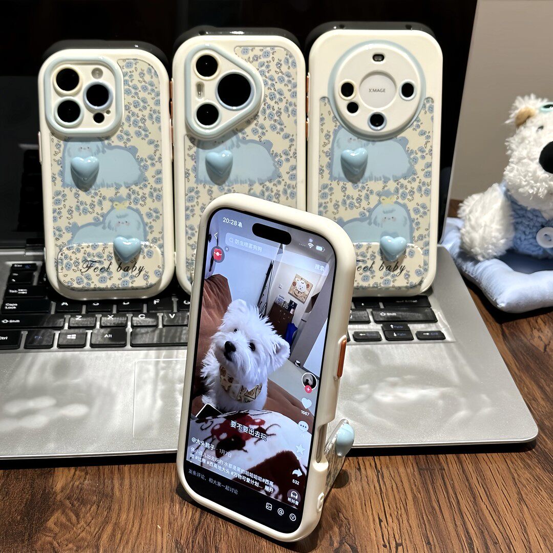 碎花蓝狗狗支架新款适用苹果17Pro手机壳iPhone16max小米15华为mate80pura70k60reno14荣耀400vivox300findx9 - 思点点旗舰店