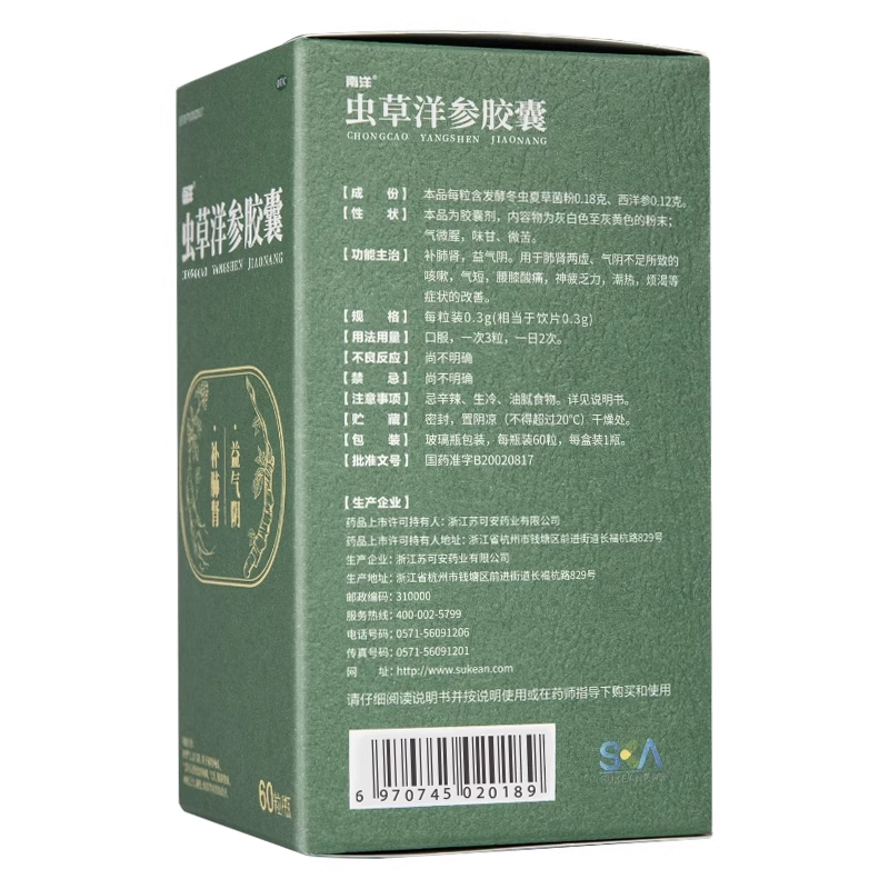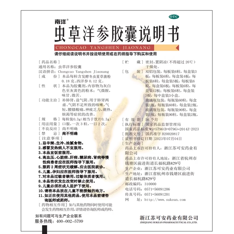 SOUTH OCEAN/南洋 虫草洋参胶囊 0.3g*60粒*1瓶/盒 - 百姓和大药房旗舰店