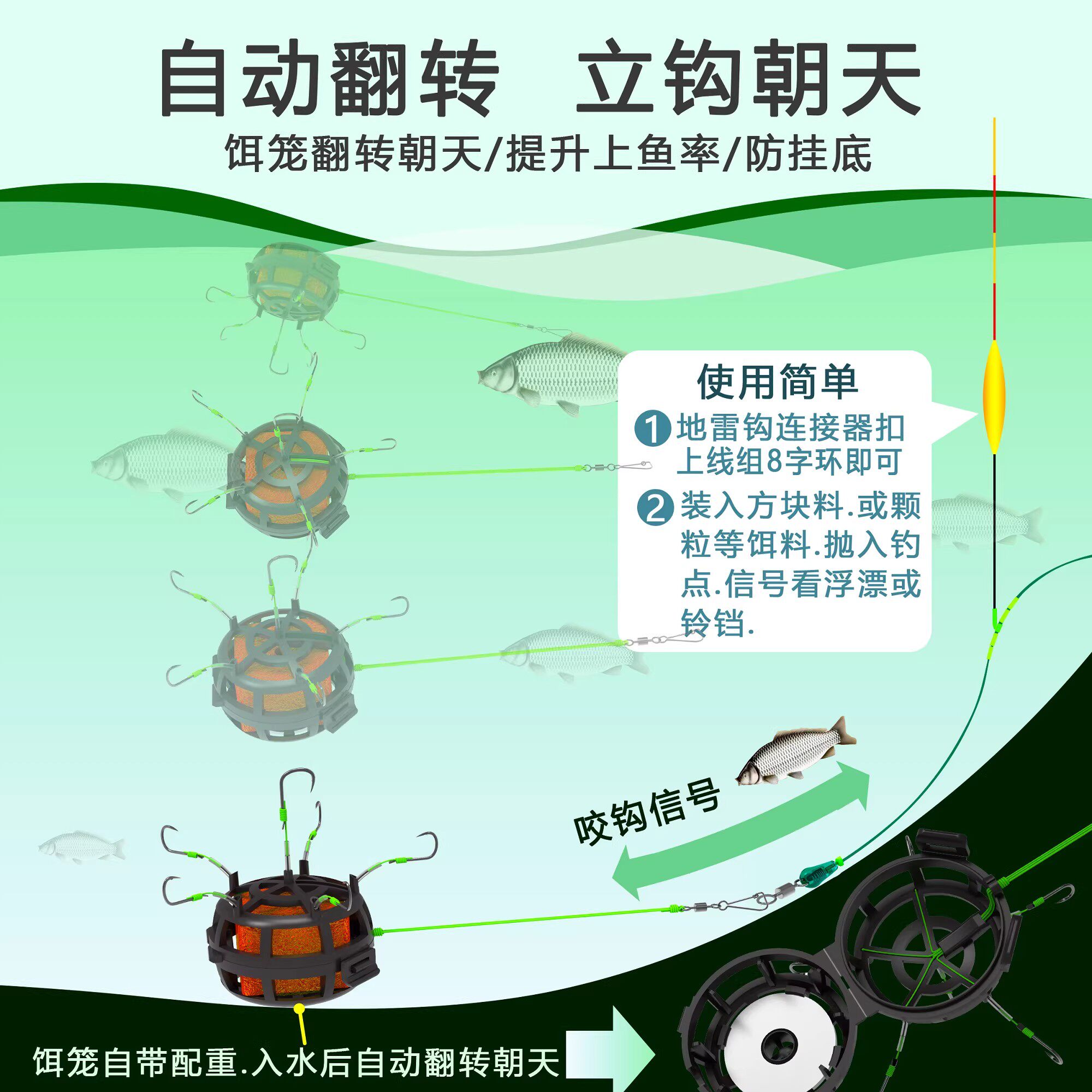 正品伊势尼朝天饵笼钩反底钩地雷钩爆炸钩新型反钓线组鱼钩翻板钩 - 渔悦钓具城