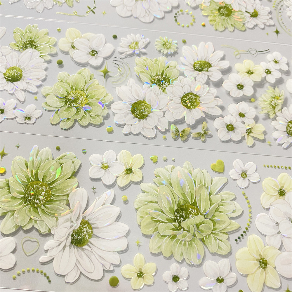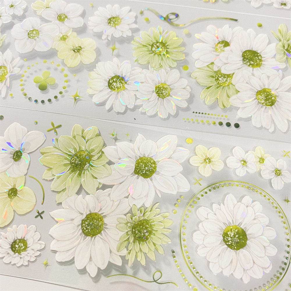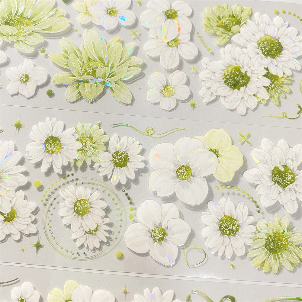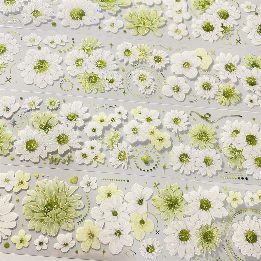 手帐分装胶带h93幸运雏菊朝夕绿色花清新PET古风素材账手机壳贴纸 - 宝藏手帐社团胶带分装