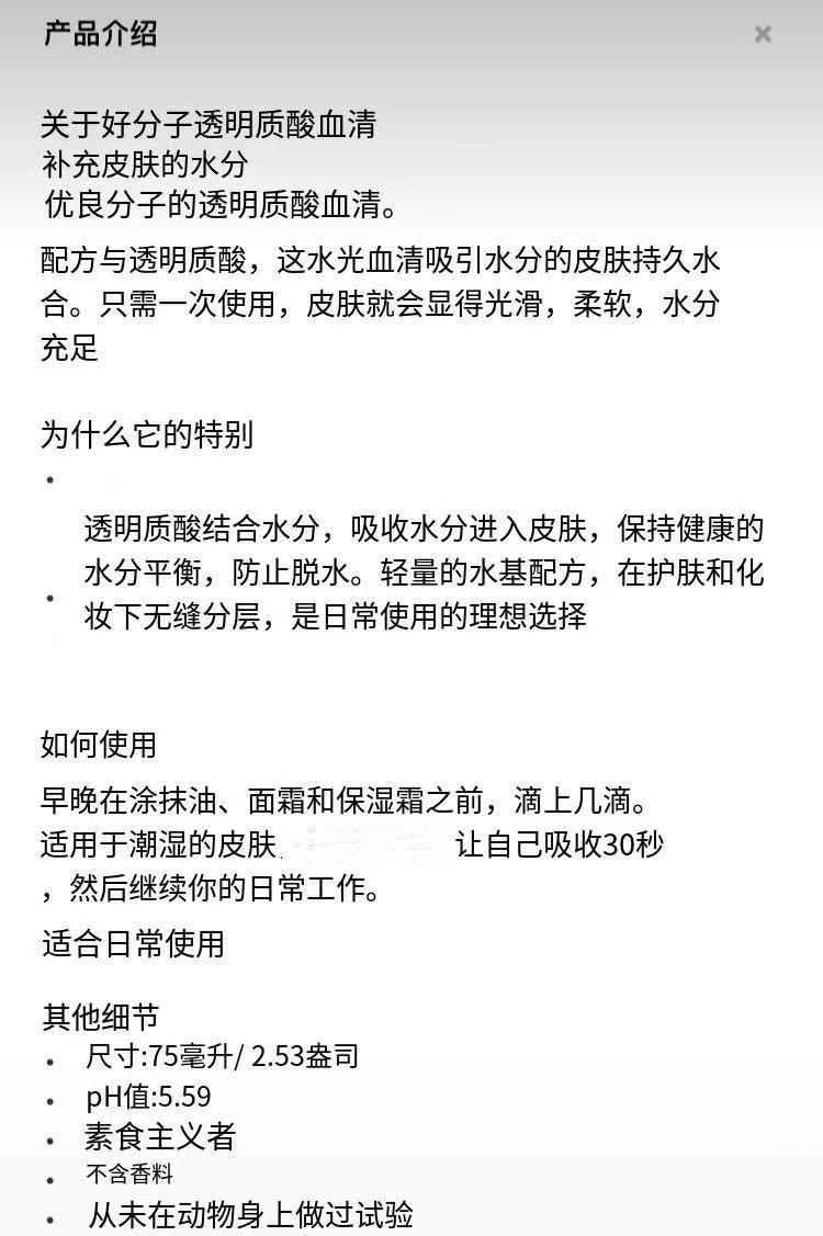 【现货】GM透明质酸75ml大瓶装 GOOD MOLECULES 保湿补水 - 乐心心海外购