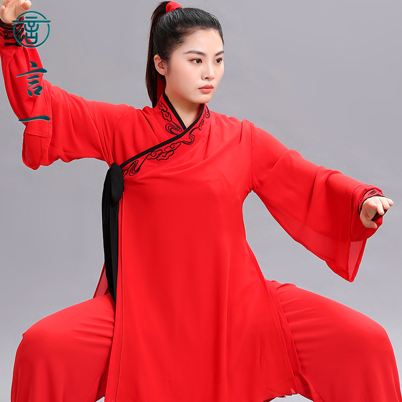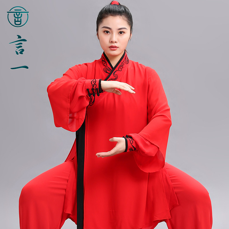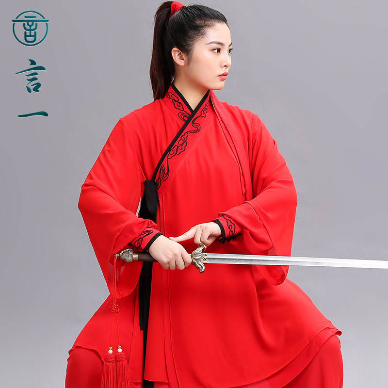 言一太极刺绣传统汉风汉服太极表演服丝麻中式武术气功比赛中国风 - 言一旗舰店