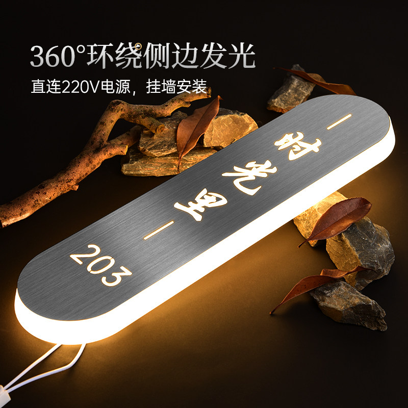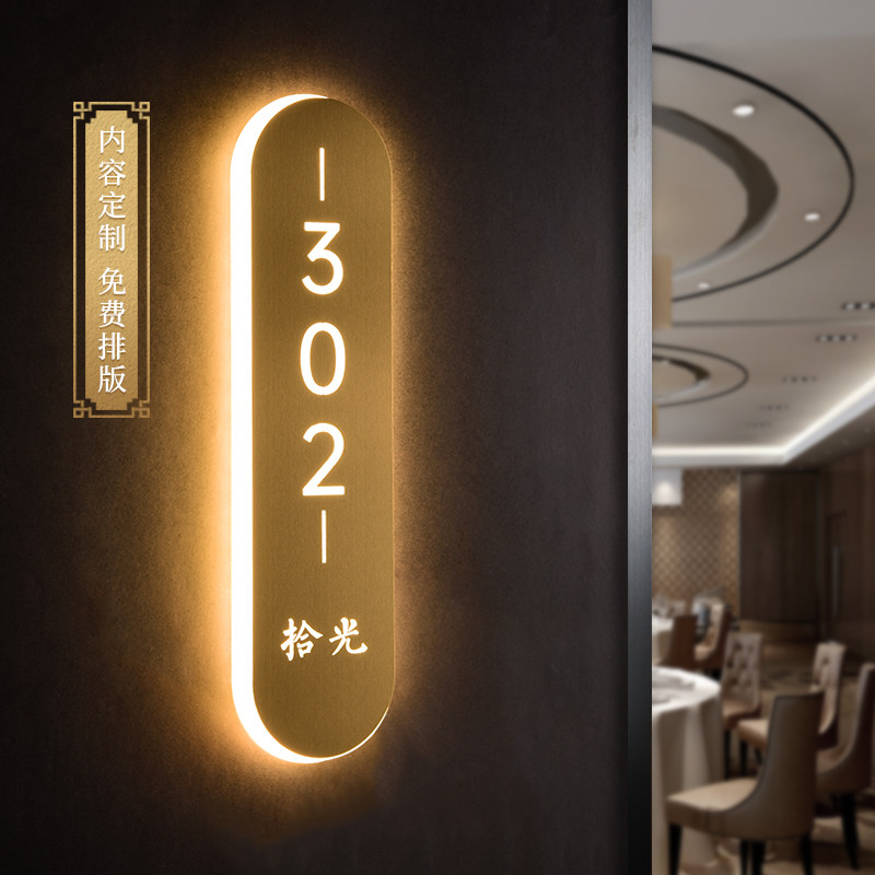 高档发光门牌抗指纹不锈钢拉丝LED灯亚克力标识牌定制轻奢带灯指示牌创意餐厅酒店饭店包厢包间包房号牌定做 - 奇狮旗舰店