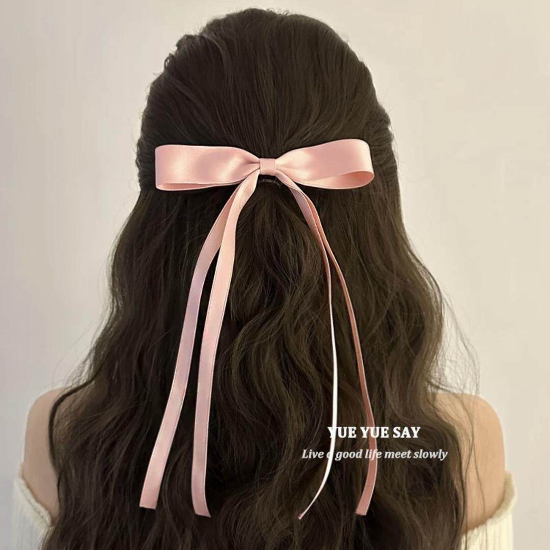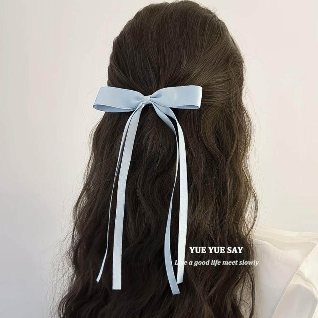 仙仙丝带法式蝴蝶结飘带发夹甜美超仙气质编发刘海边夹鸭嘴夹子女 - 萝伊发饰