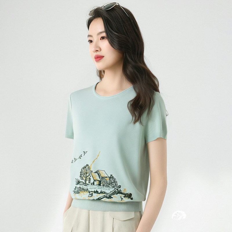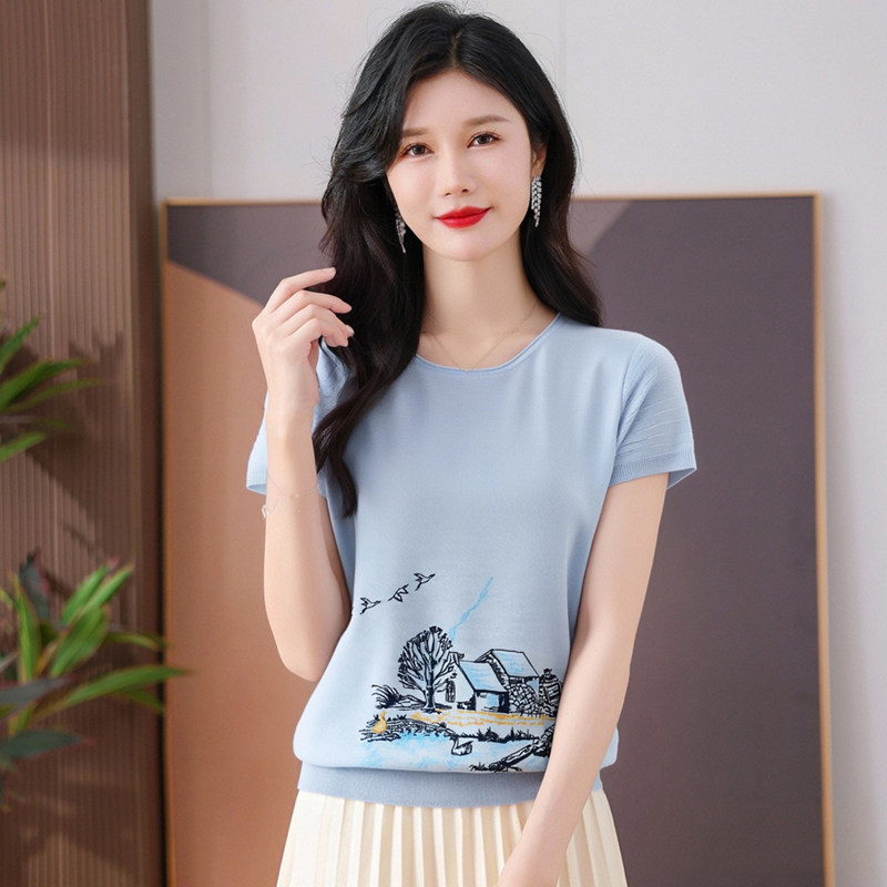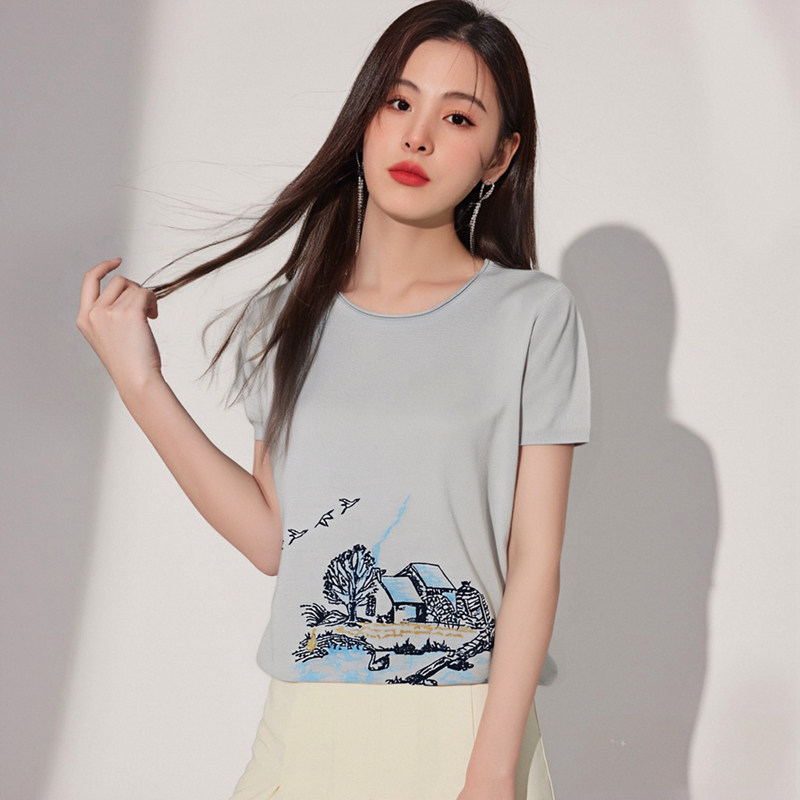 您的位置:安康生态农业开发平台  >   >  鼎成麻业正品夏季薄款休闲时尚亚麻针织衫绣花圆领短袖T恤女8143