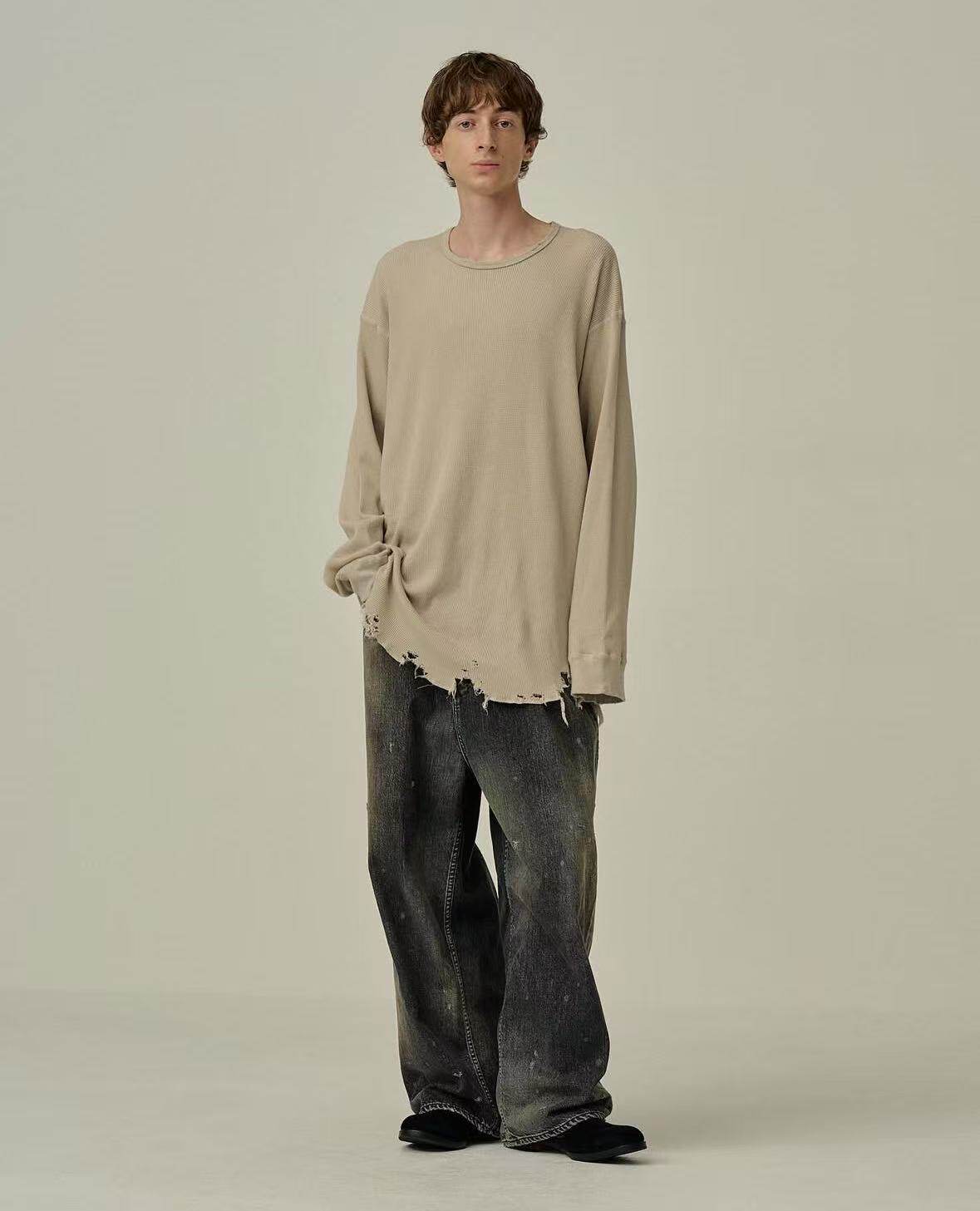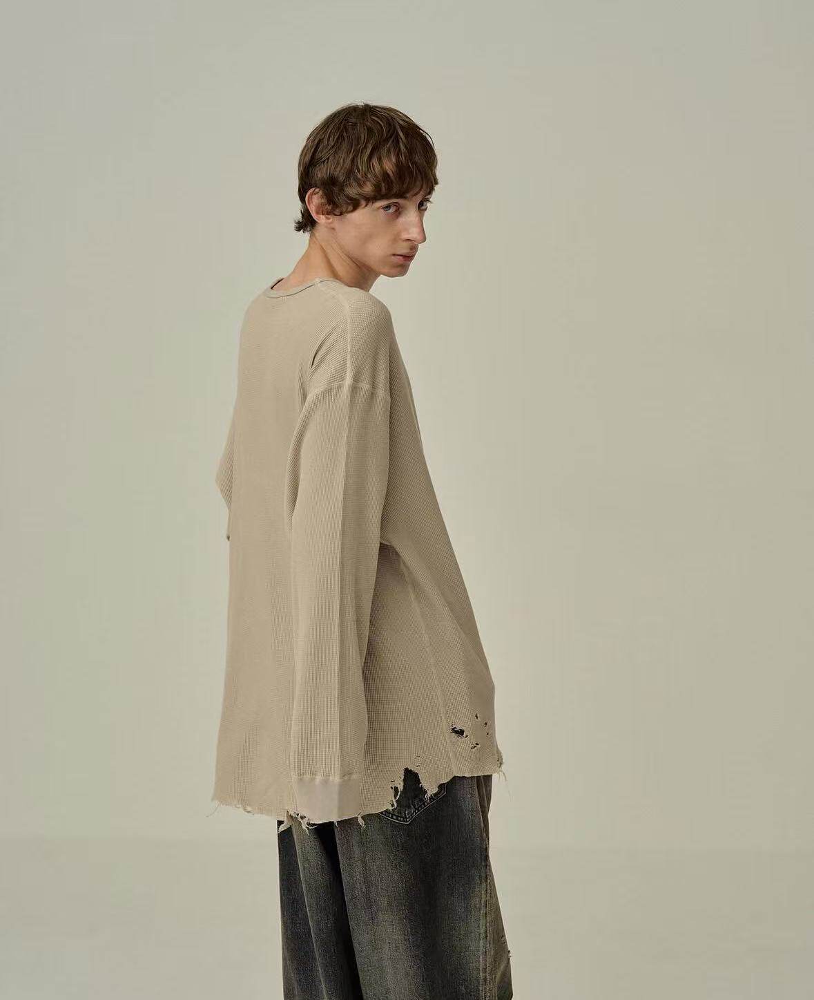 【代购】ANCELLM 25aw Damage waffle 定番破坏做旧华夫格长袖T恤 - 百人町 Hyaku Co
