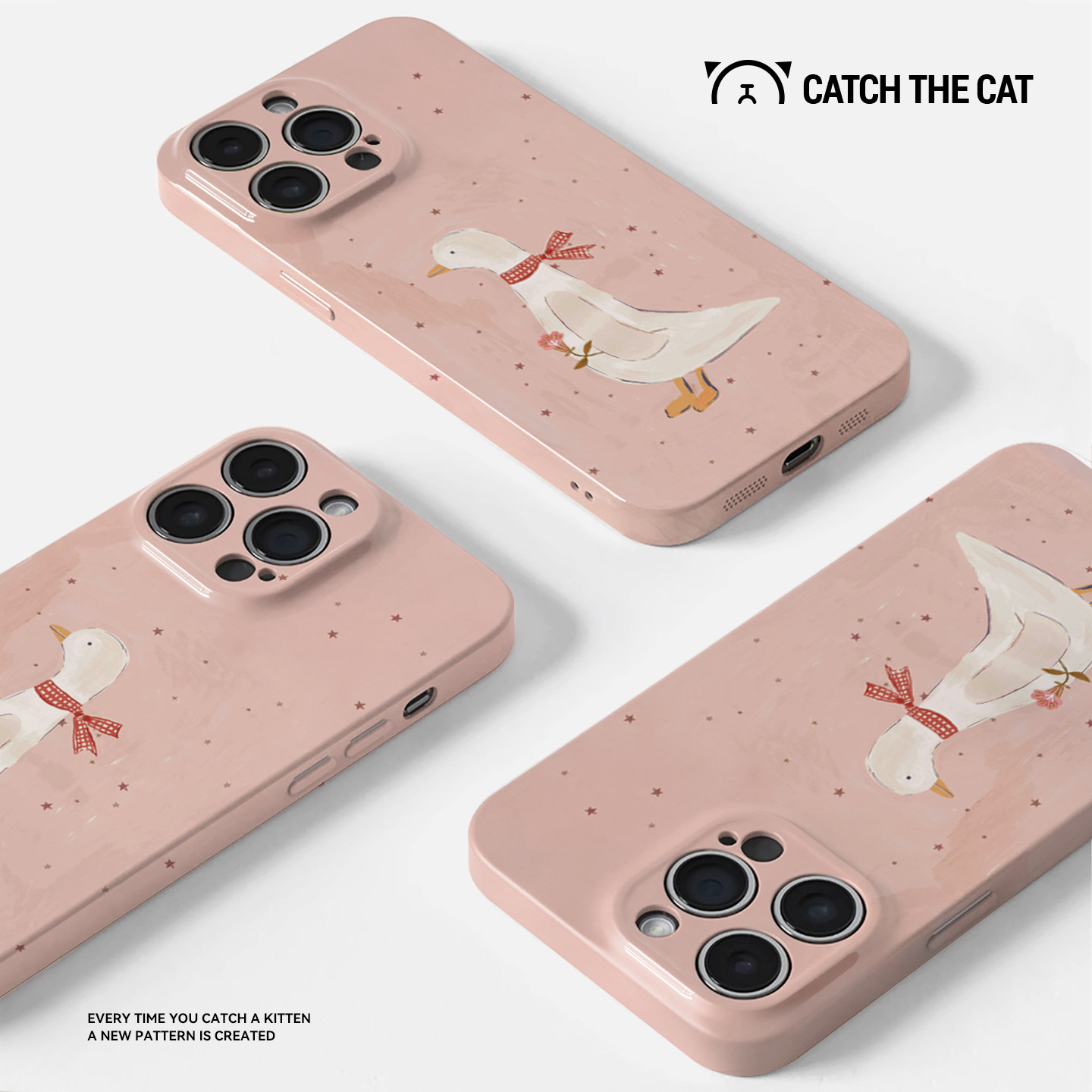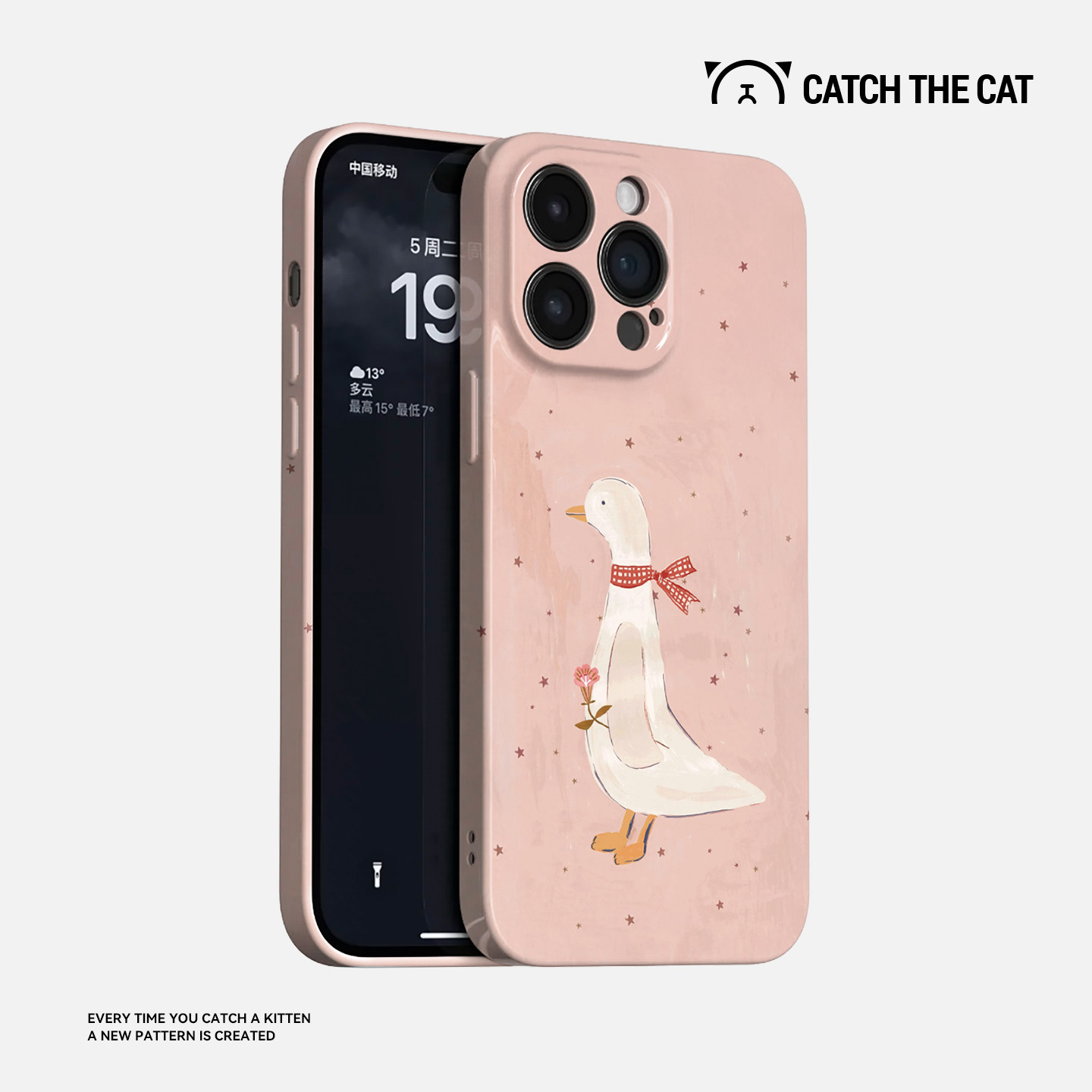 粉色花鹅~简约ins适用iphone17promax手机壳苹果16nova14华为mate70少女p80小米15opporeno13vivos50一加ace6 - 抓住小猫
