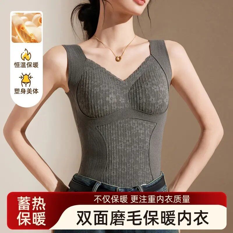 全额运补琥珀流光性感V领德绒保暖背心女自带胸垫内搭打底8816 - 潮流能量欧