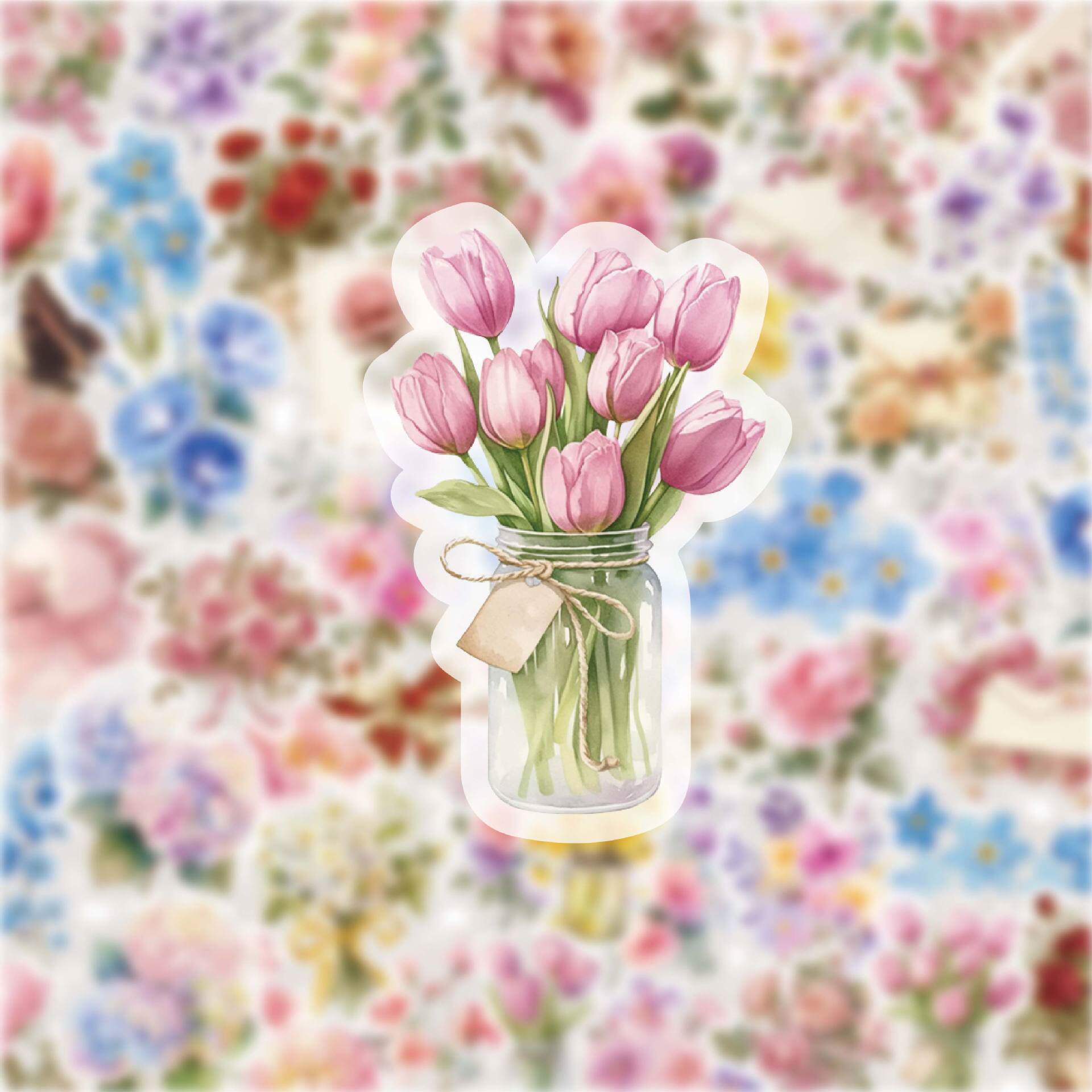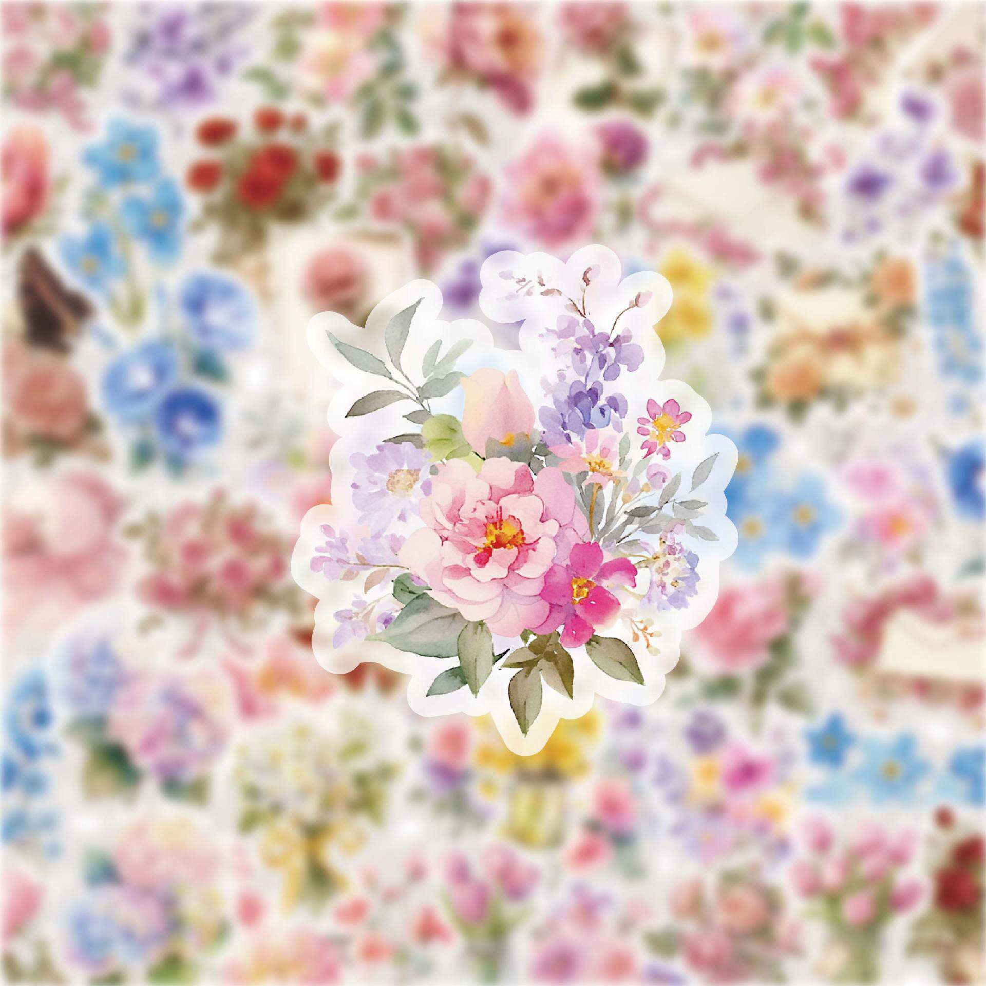 花草62张ins风浪漫防水手账花朵手机透明贴纸行李箱电脑DIY装饰 - 比个大心儿童伴手礼