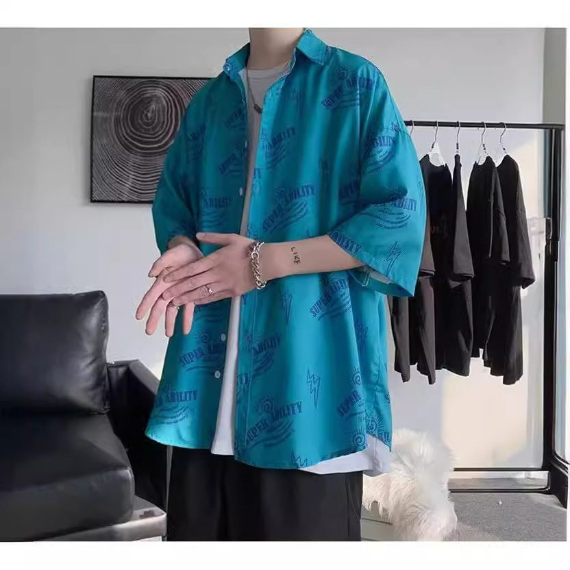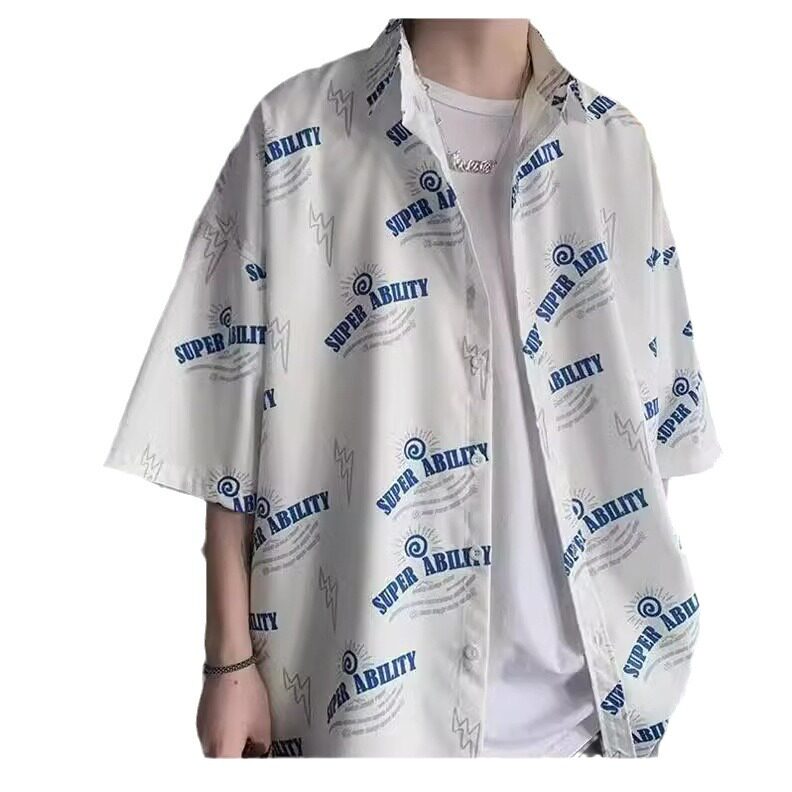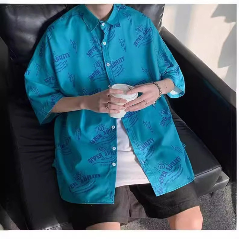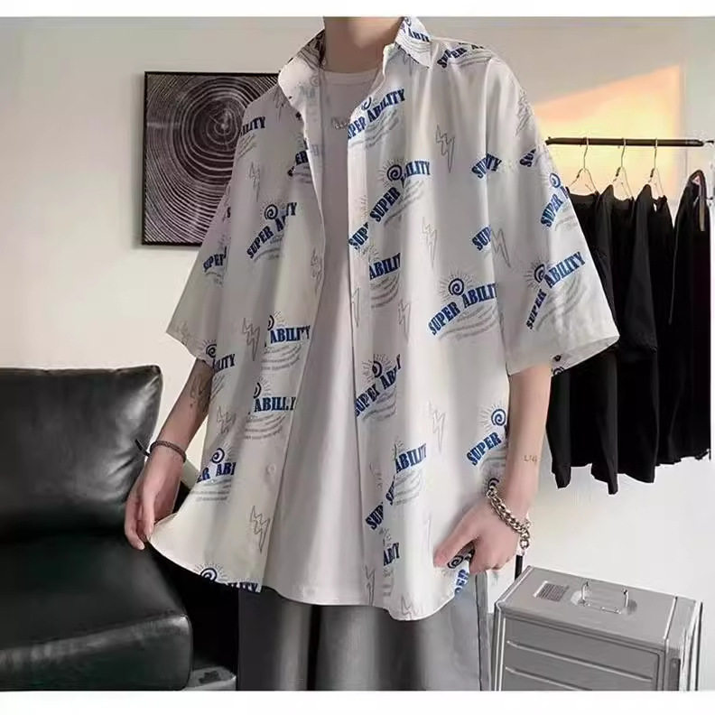 短袖衬衫男春秋薄款宽松休闲百搭韩版潮流青年帅气印花衬衣外套 - GDD精品男装