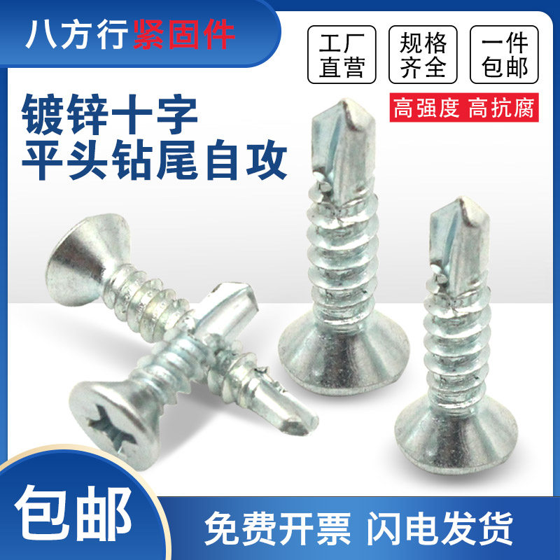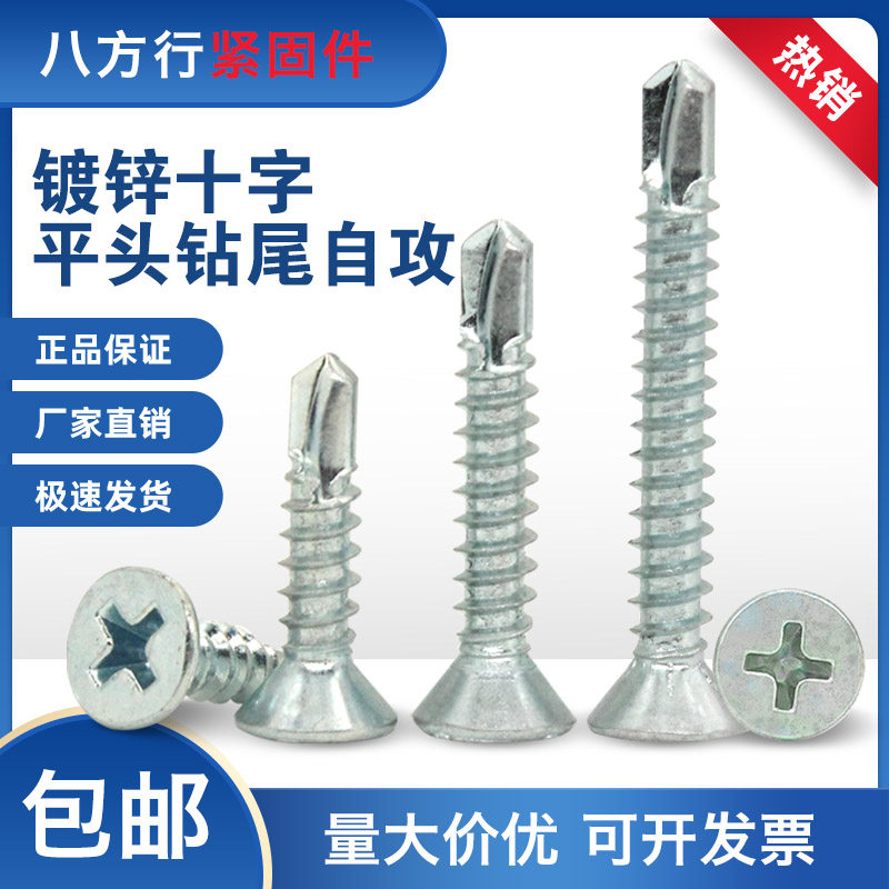镀锌十字平头钻尾螺丝自攻钉自钻螺丝沉头自钻螺钉燕尾丝M4.2M4.8 - 八方行旗舰店