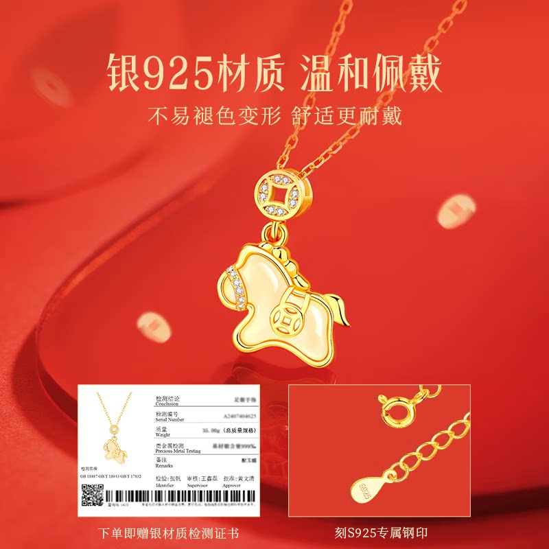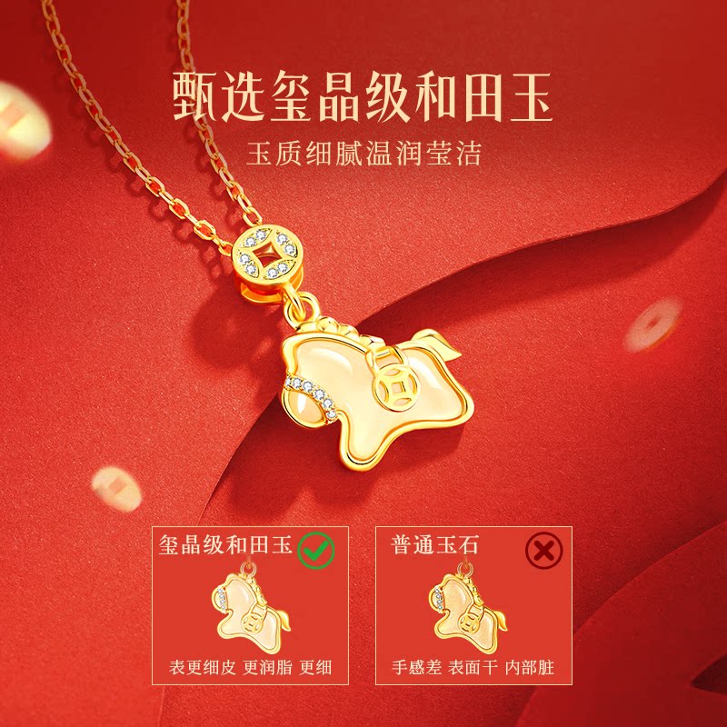 中国黄金央创本命年小马项链纯银女款和田玉坠生日礼物送女友S925 - glten旗舰店