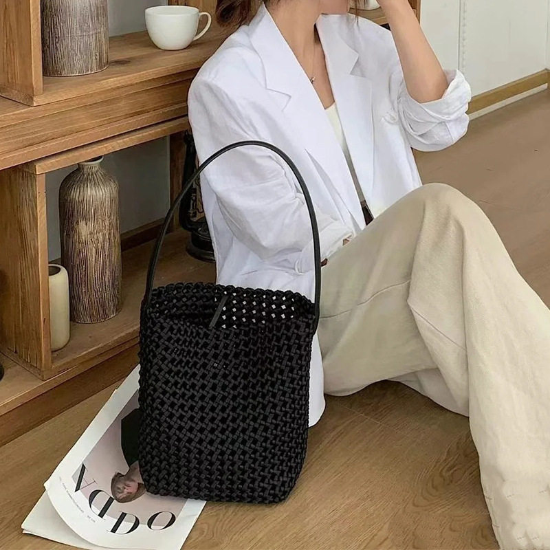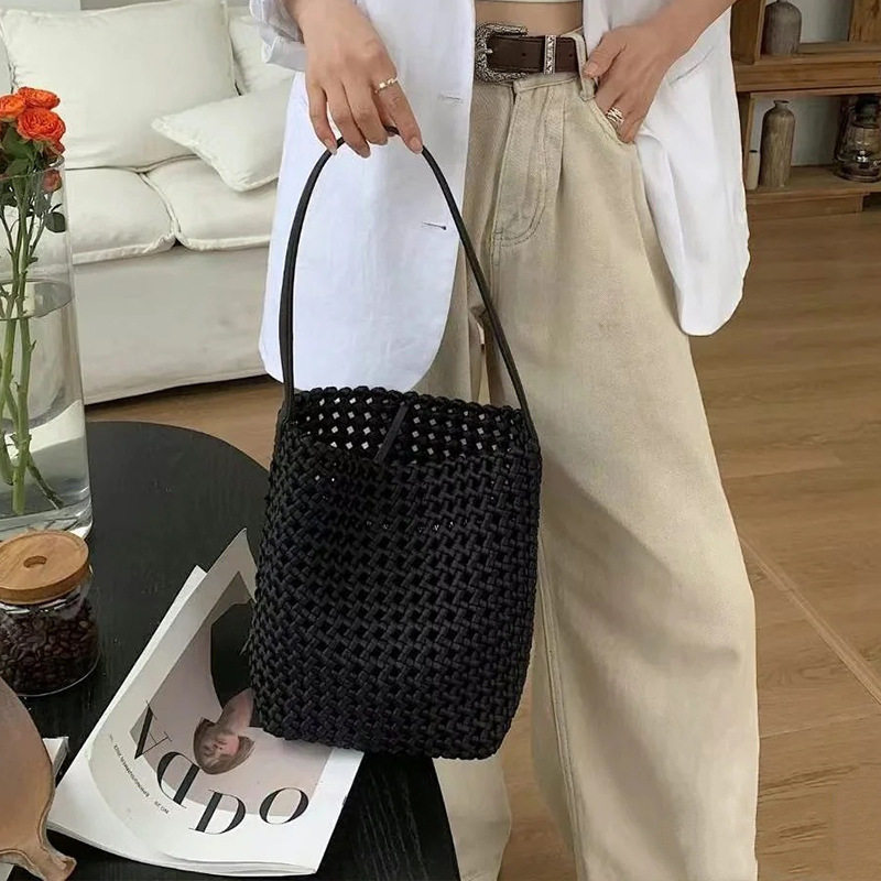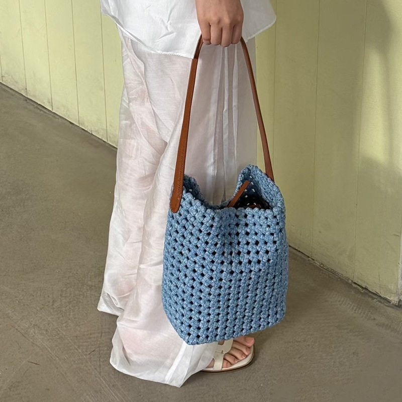 手工编织水洗牛仔镂空水桶包休闲百搭慵懒风大容量手提单肩腋下包 - 日常好物馆 Daily