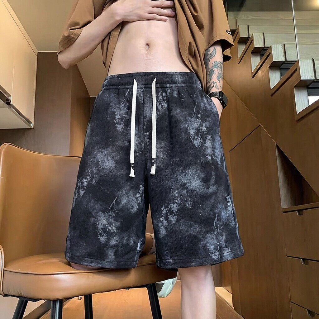 美式扎染冰丝短裤男2026新款夏季潮流宽松青少年休闲运动五分裤子 - inxx week企业店