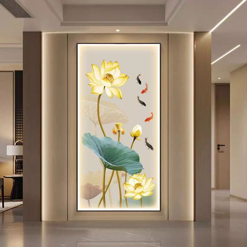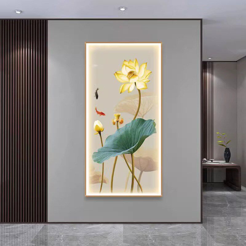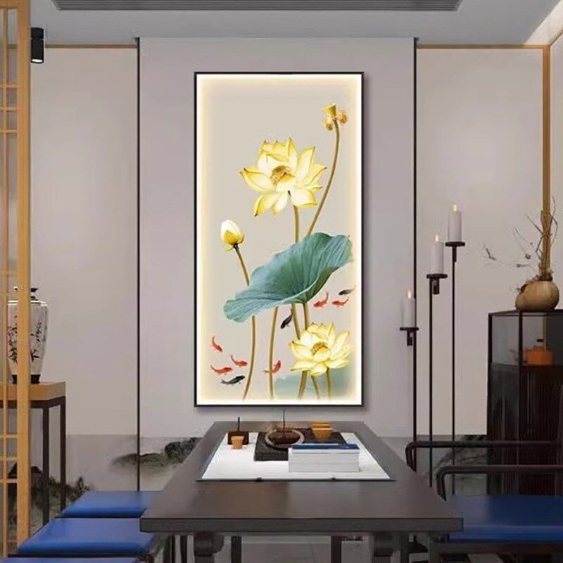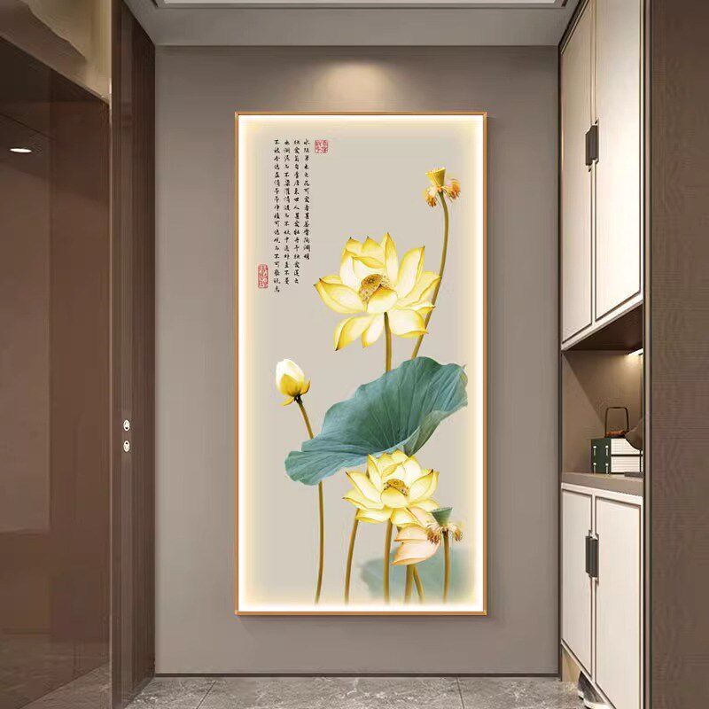 荷花灯光画玄关装饰画带灯LED茶室客厅正对门挂画走廊过道壁灯画 - 盛创百货官营店20