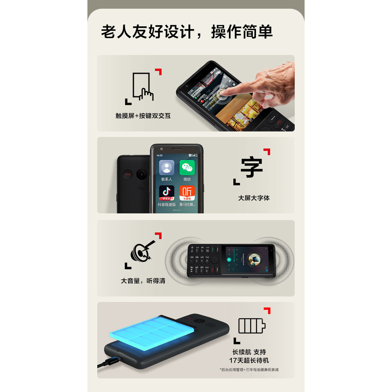 TCL 全网通 5G 触摸大按键大字体安卓智能手机 T508N 热点 wifi 抖音微信 - TCL启鸣鑫专卖店