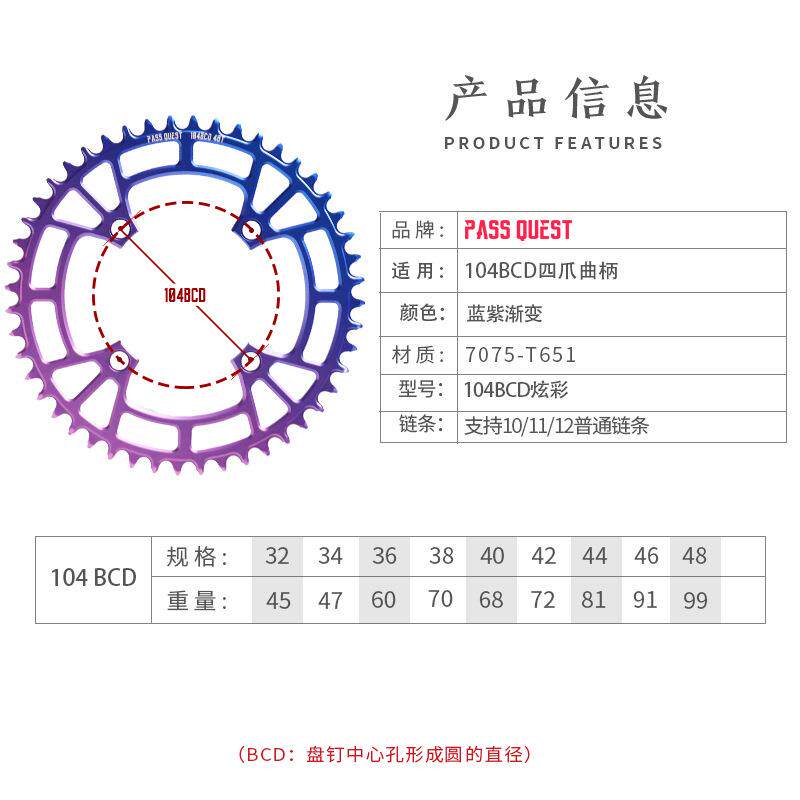PASS QUEST 104BCD 炫彩正负齿单盘7075铝 xt780 610 slx 牙盘齿 - 盛江商贸城