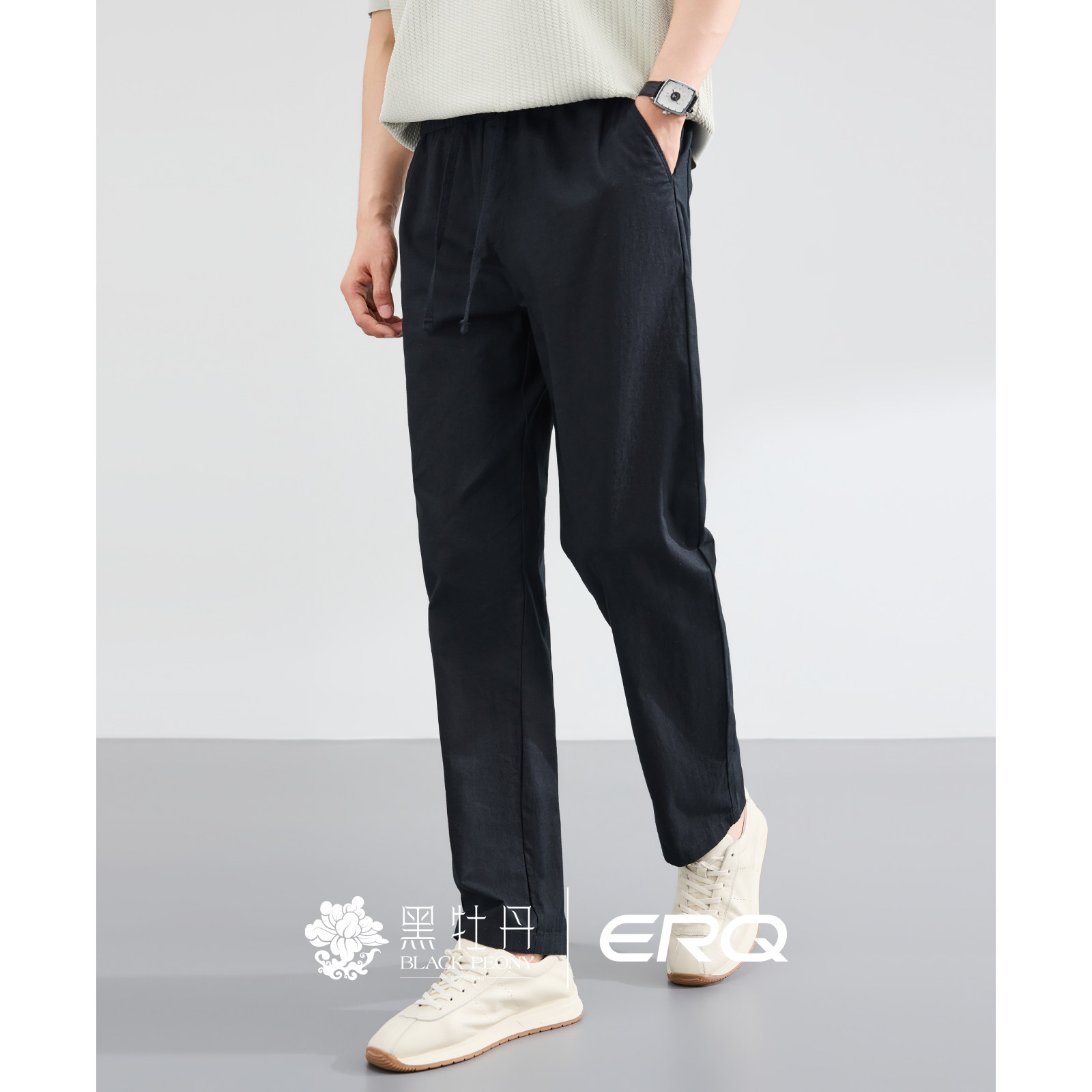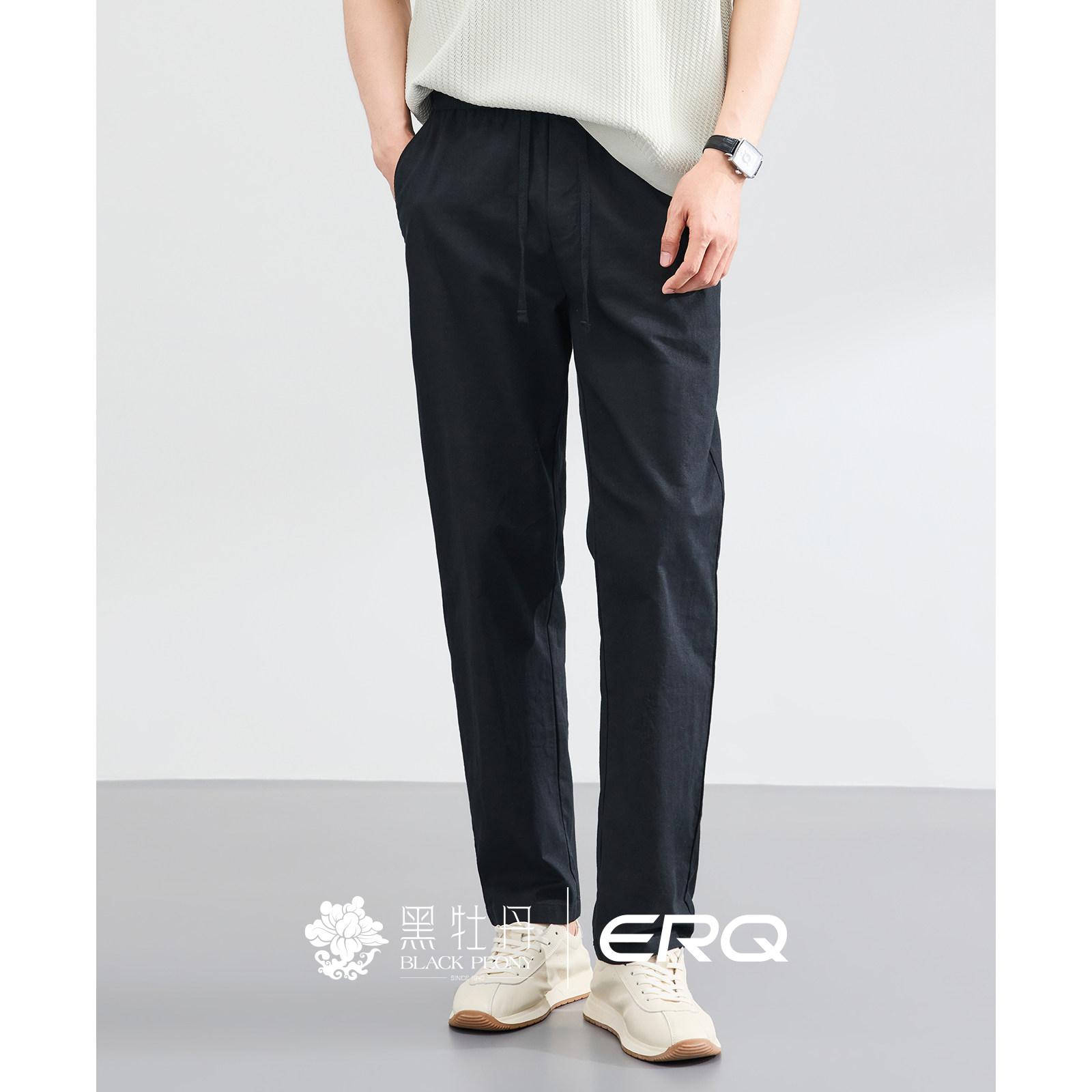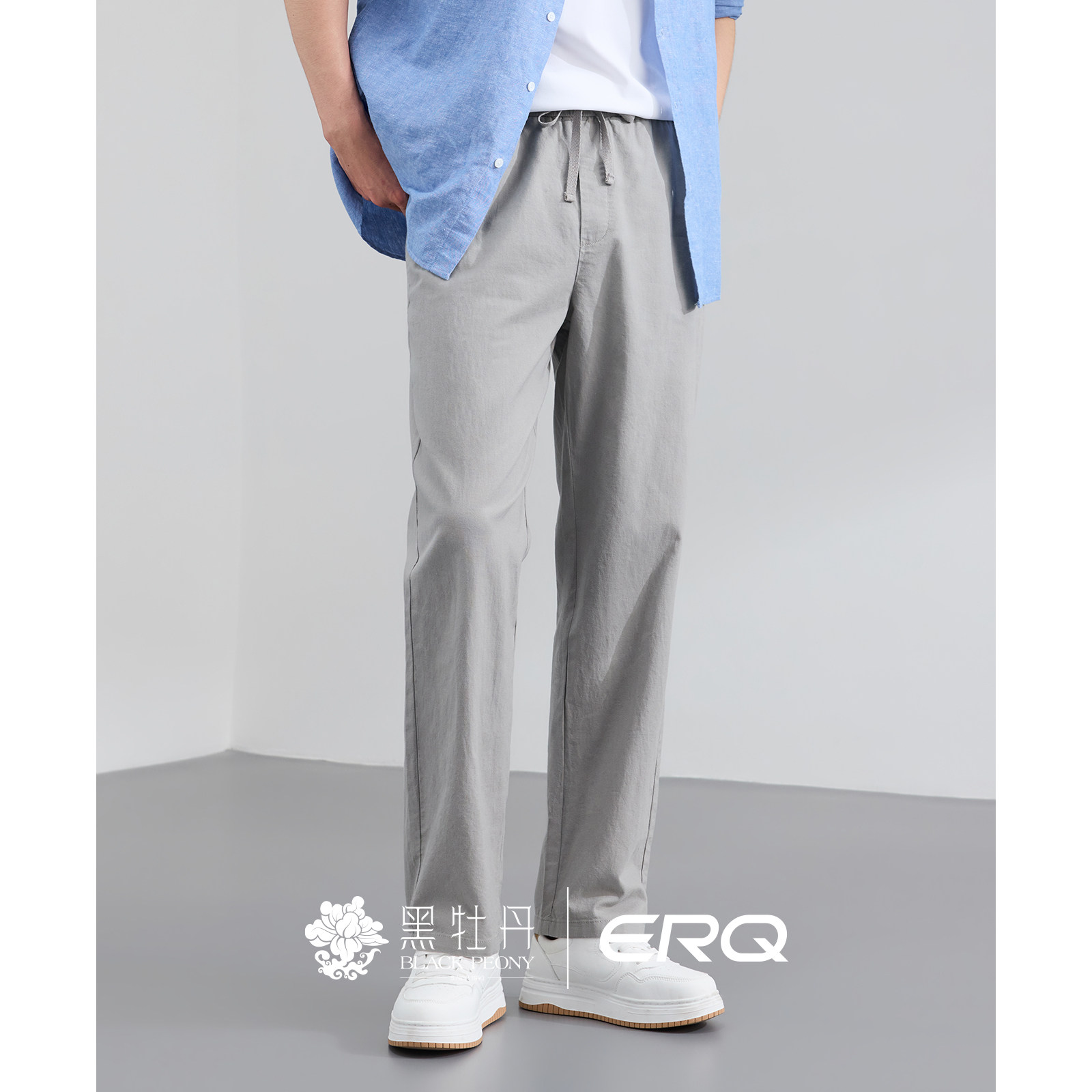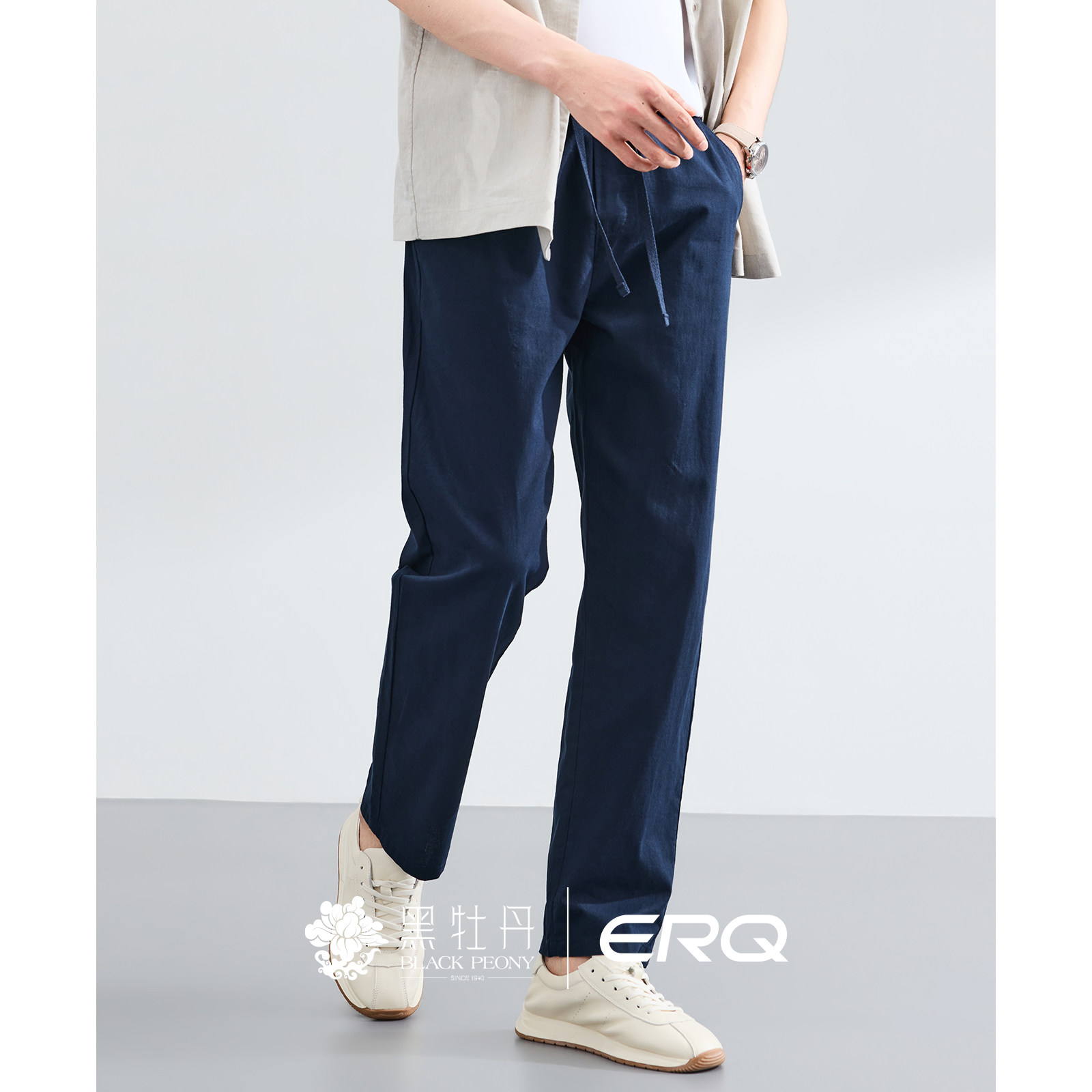ERQ[棉麻松紧腰]902男士宽松休闲裤抽绳春夏薄款直筒户外商务透气 - erq旗舰店