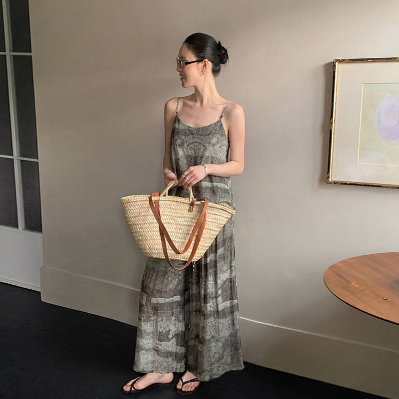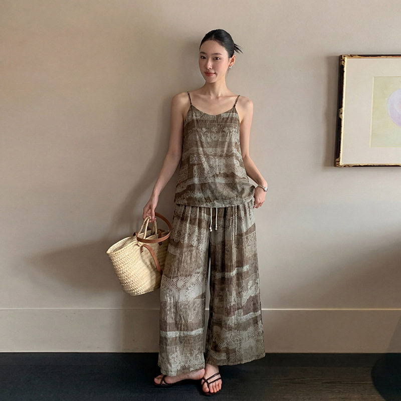 MOXI 夏季2026新款休闲波米亚度假风复古印花吊带阔腿裤套装女潮 - ZYLA Studio