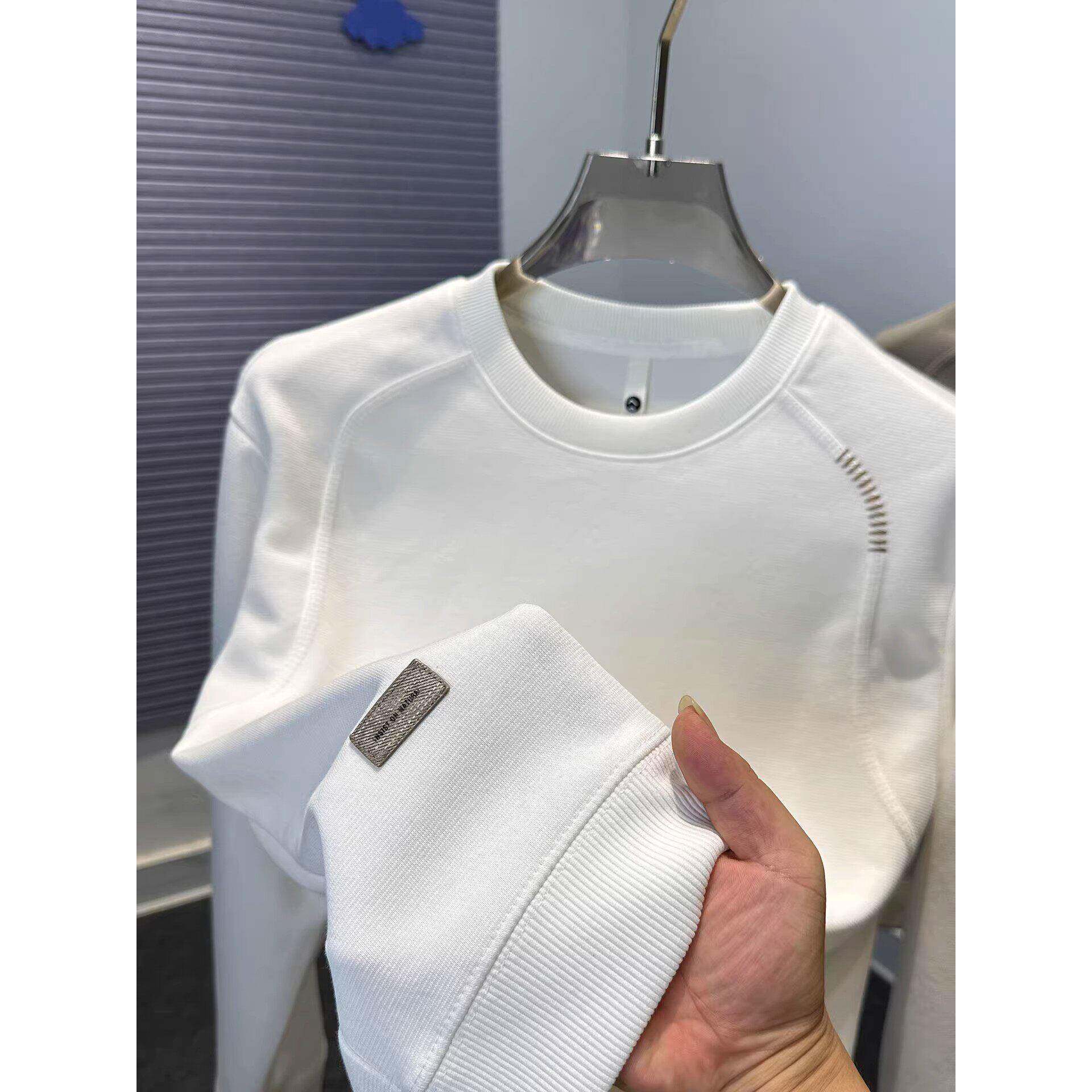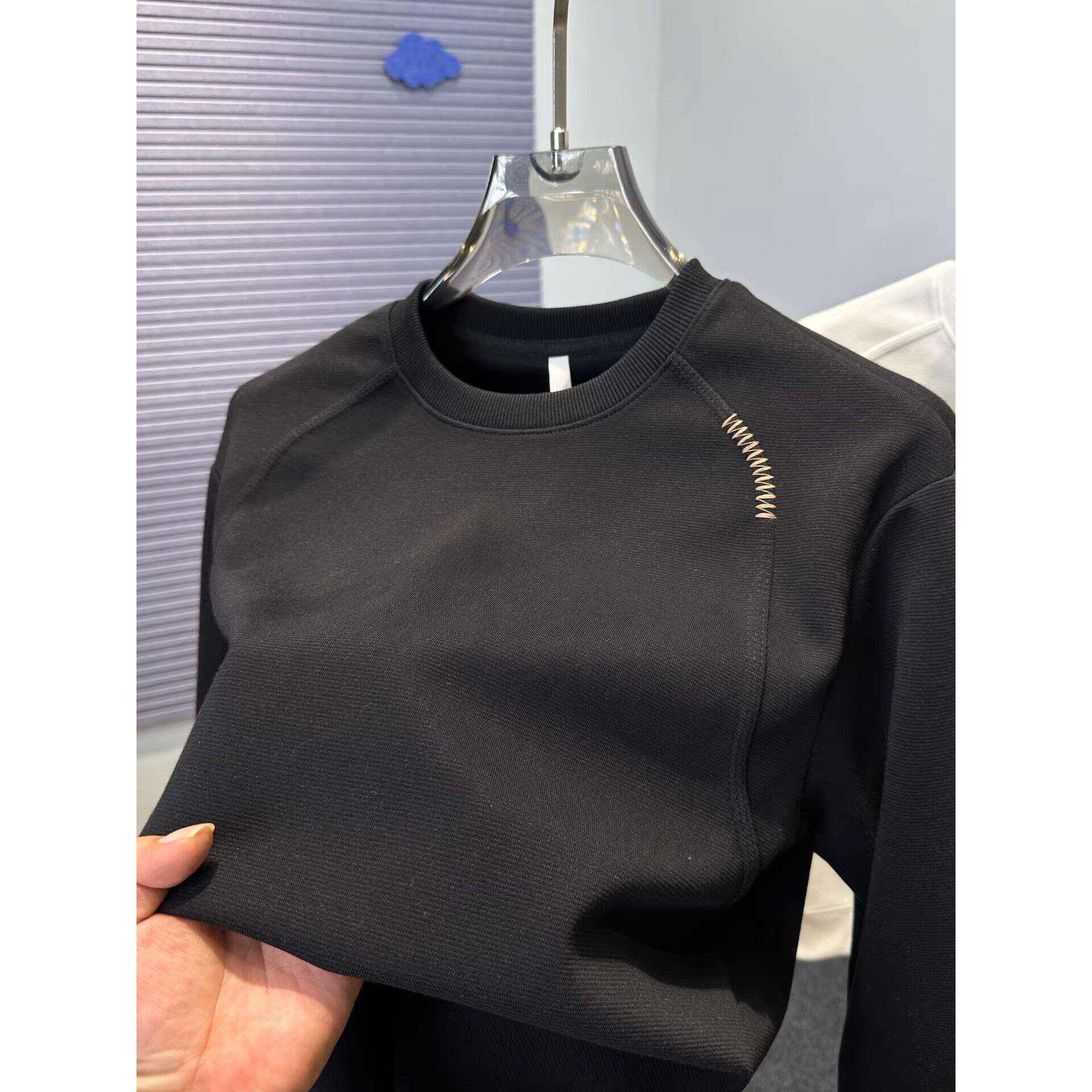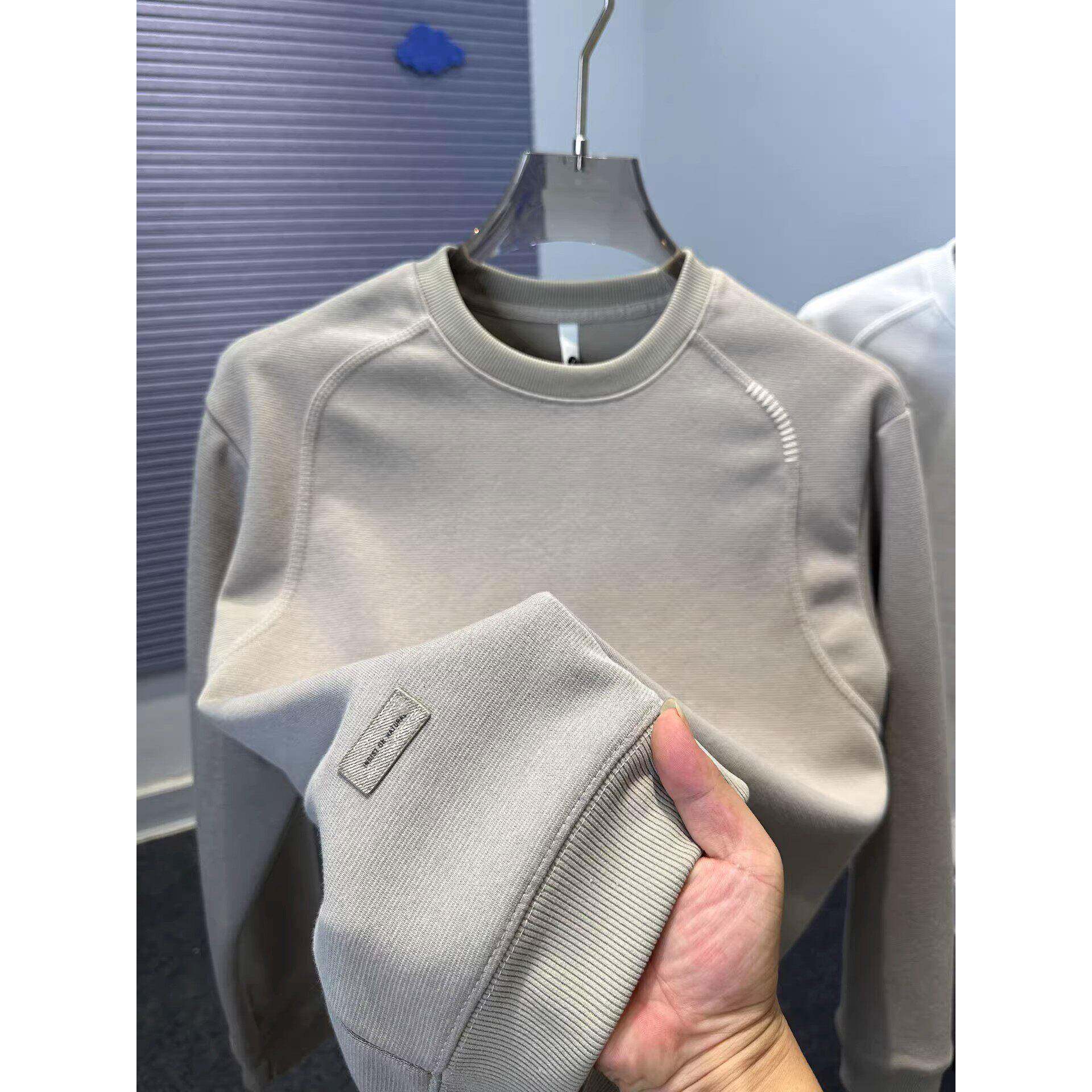 Home Daily~时尚拼接圆领卫衣男秋冬套头上衣服宽松纯色t恤男长袖 - ZYHc潮牌