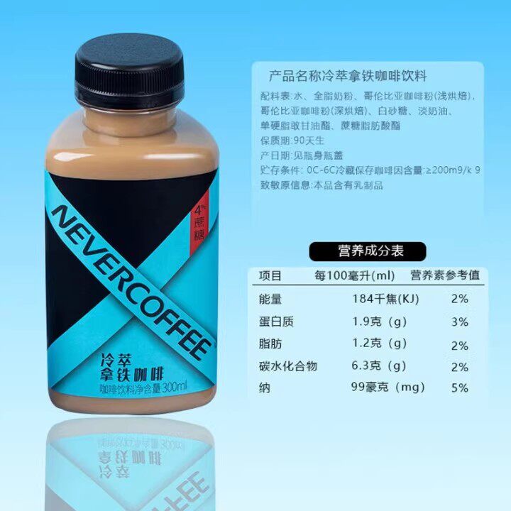 NeverCoffee冷萃美式生椰茉莉冰博客拿铁即饮咖啡饮料300mL*6瓶 - 仁禾糖果的小店