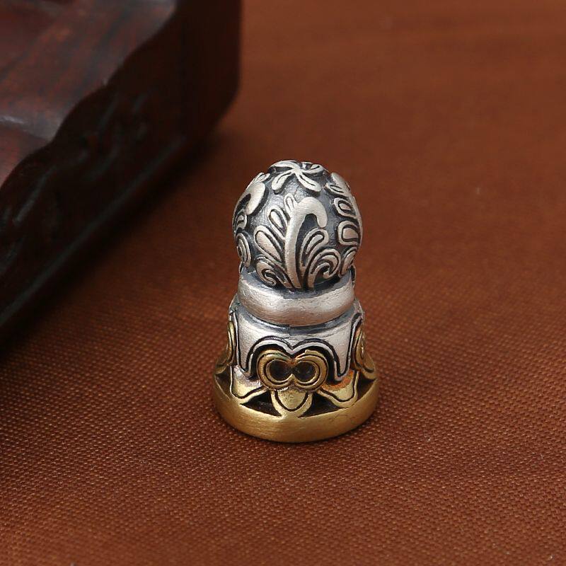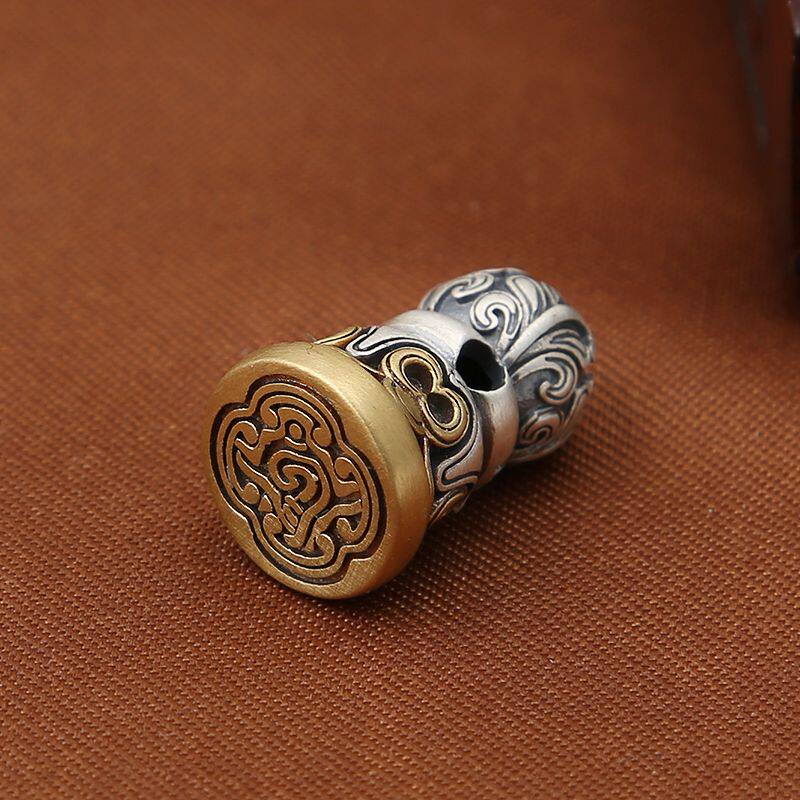 藏式印章S925纯银饰品 复古DIY配件 图腾哑光印章手串小吊件挂件 - 朴素文玩