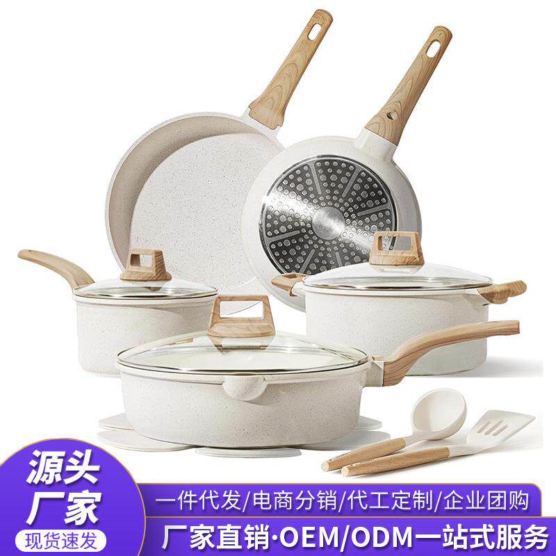 跨境花岗岩全套锅具套装厨房用品麦饭石不粘锅煎炒锅cooking pot - 元气胡工厂店的小店5