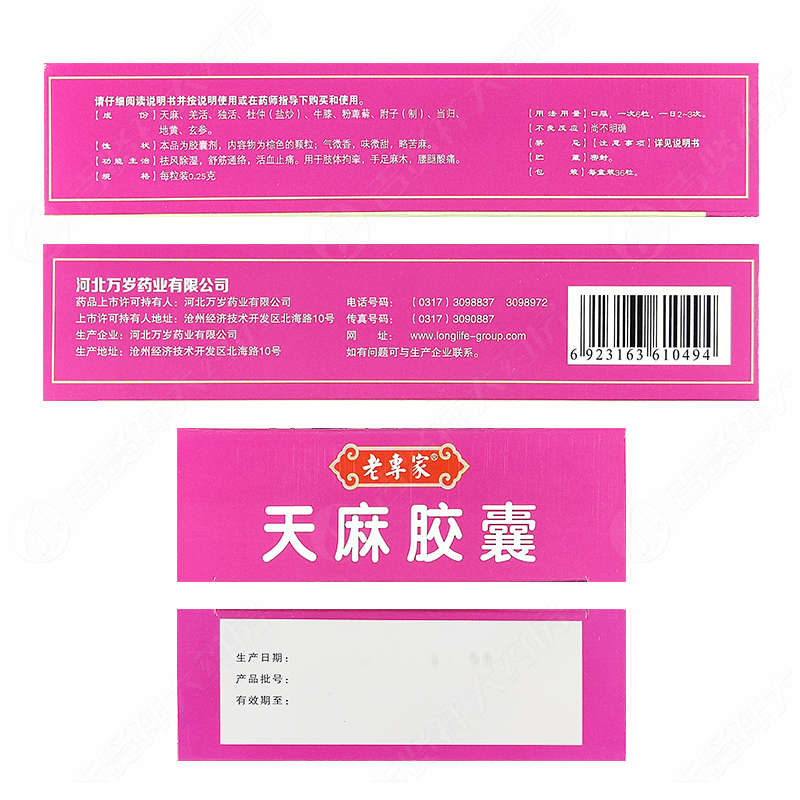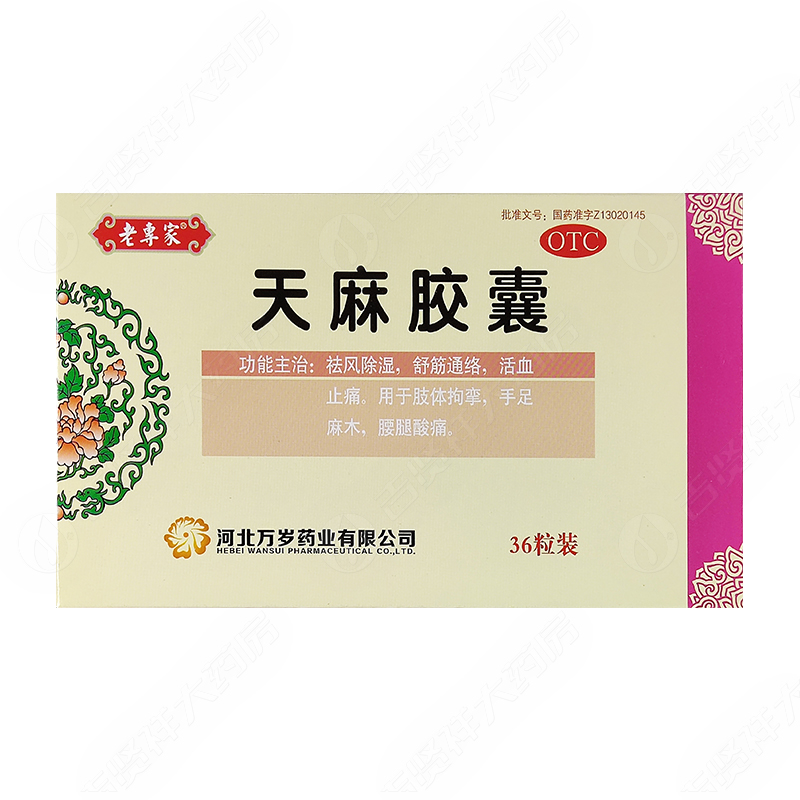 万岁老专家天麻胶囊36粒腰腿酸痛手足麻木舒筋通络活血止痛 - 吉贤祥大药房旗舰店