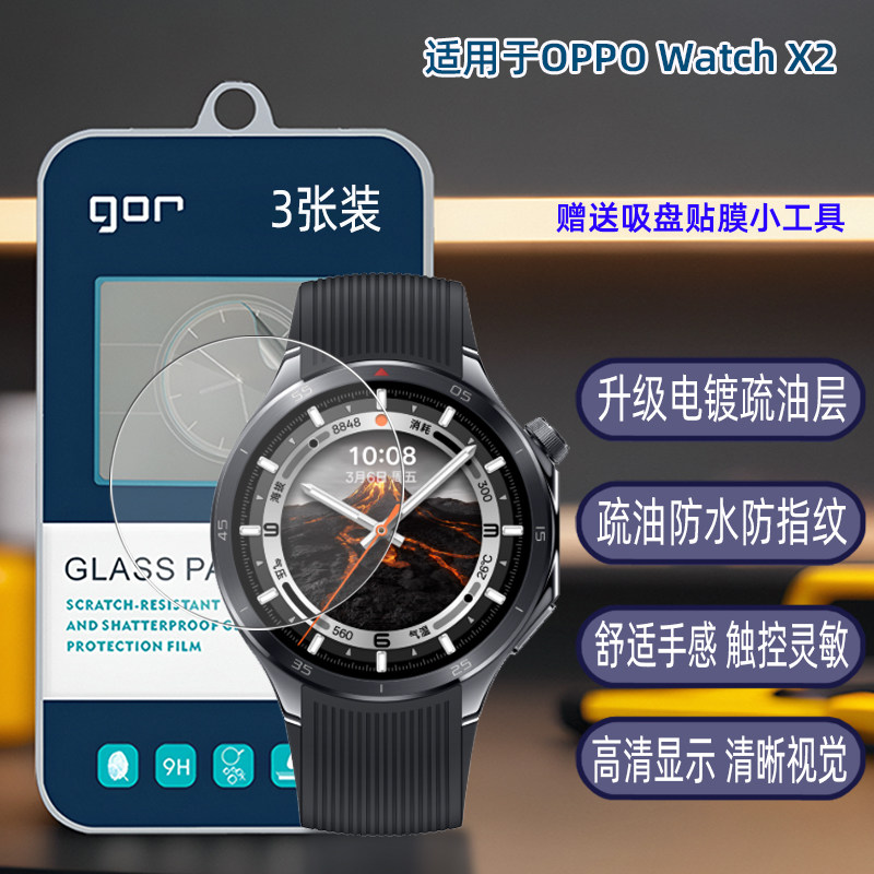 GOR适用OPPO手表Watch高清X3透明X2表盘47mm荧屏幕防指纹爆电镀疏油层钢化玻璃保护硬贴膜 - GOR品牌数码店