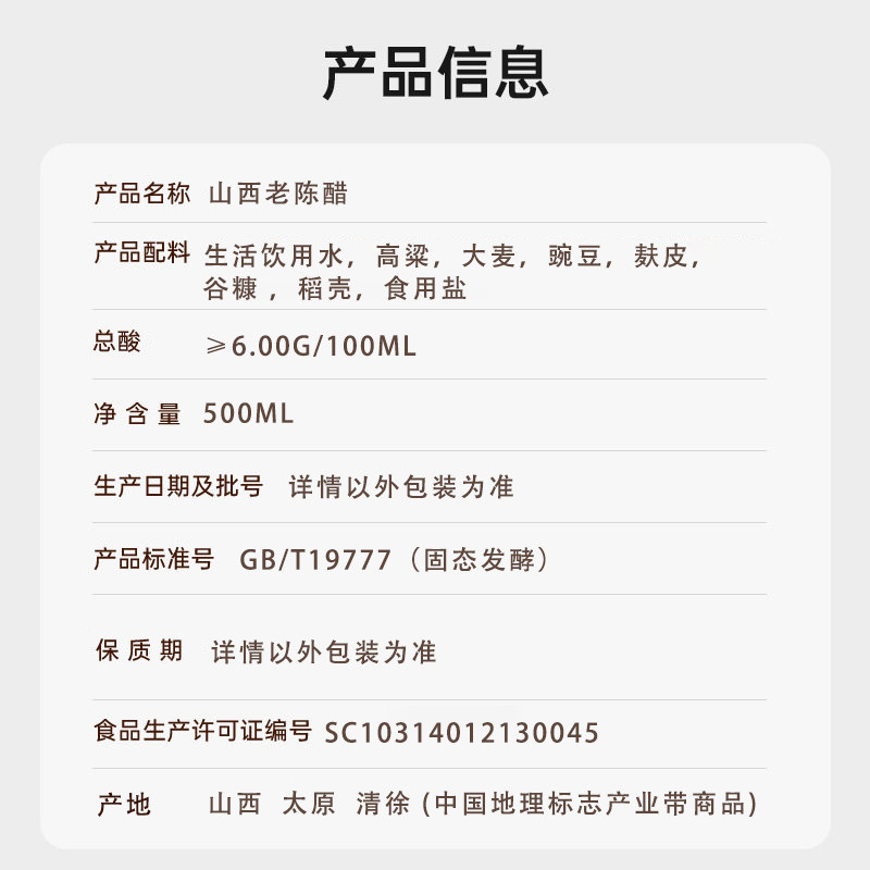 山西老陈醋500ml食用醋6度0添加19777酿造醋家用食用官方旗舰店 - 甄满分调味品旗舰店