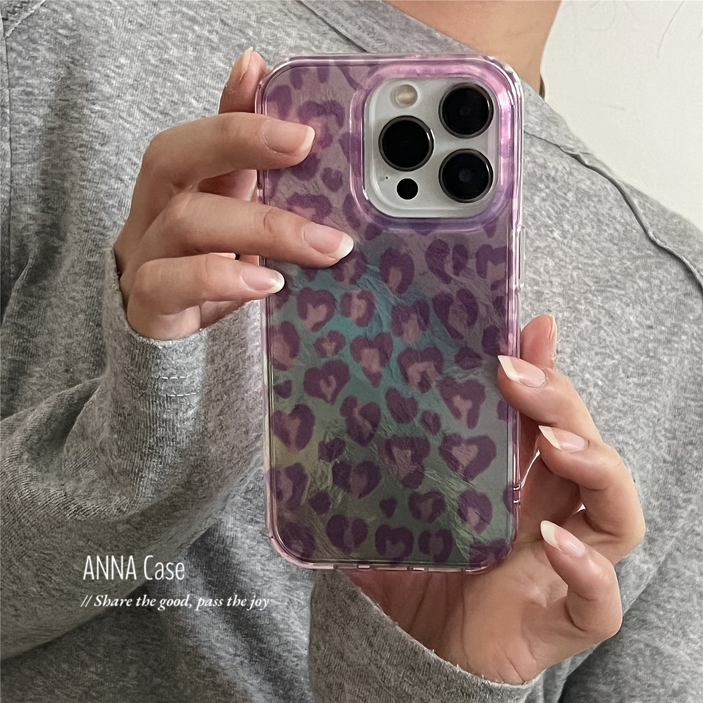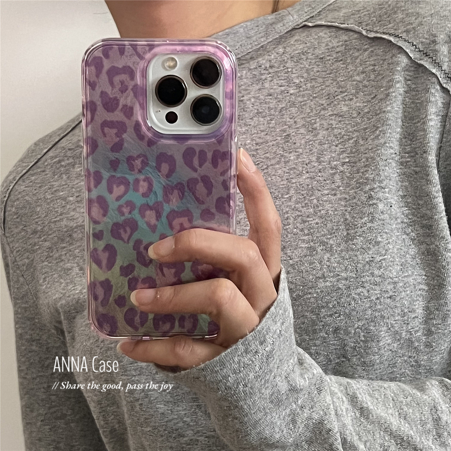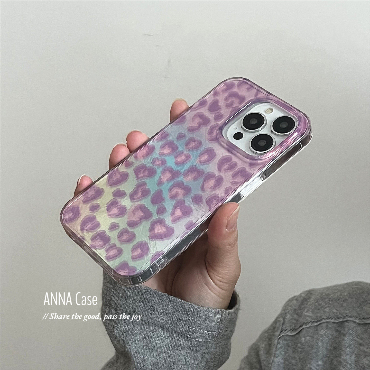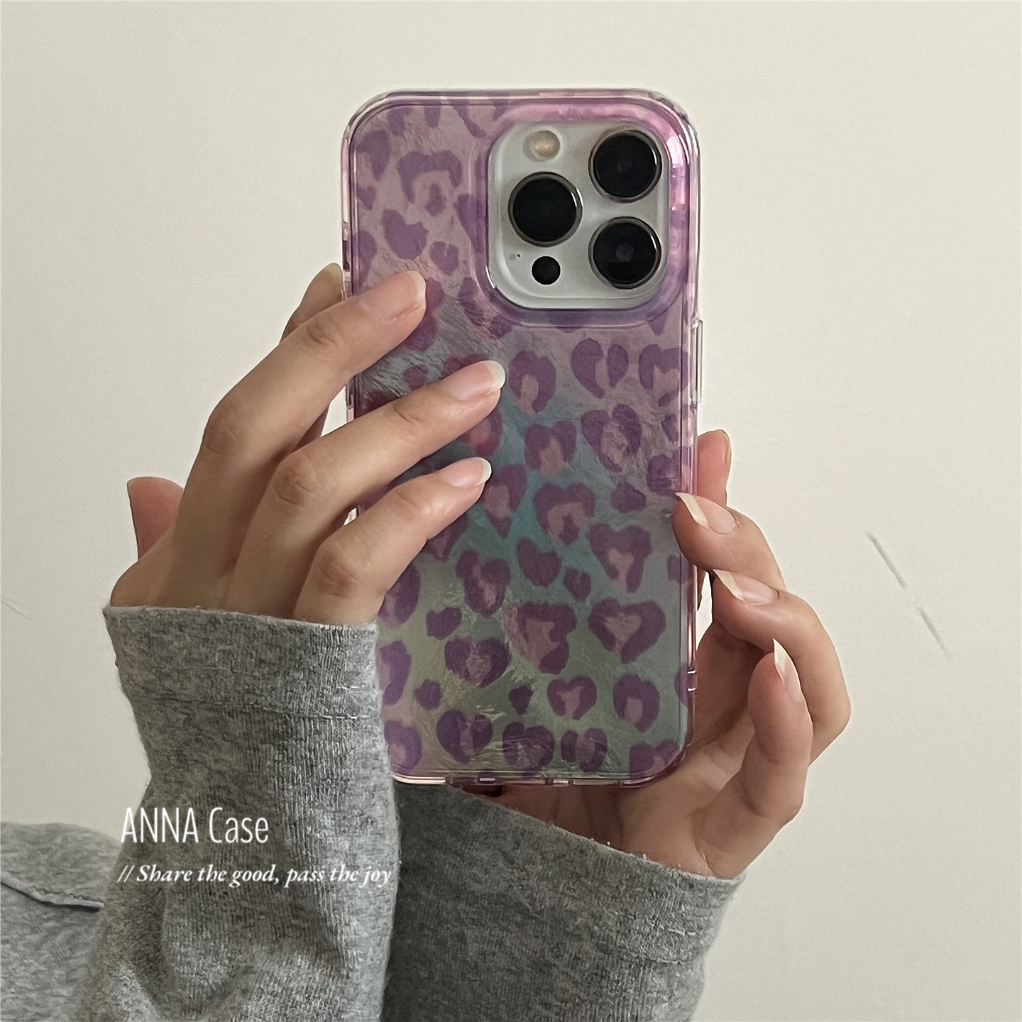 ANNACASE少女浅紫豹纹渐变锡纸纹适用苹果17promax手机壳iphone17小众15pro新款14全包软16promax防摔保护套 - ANNA CASE