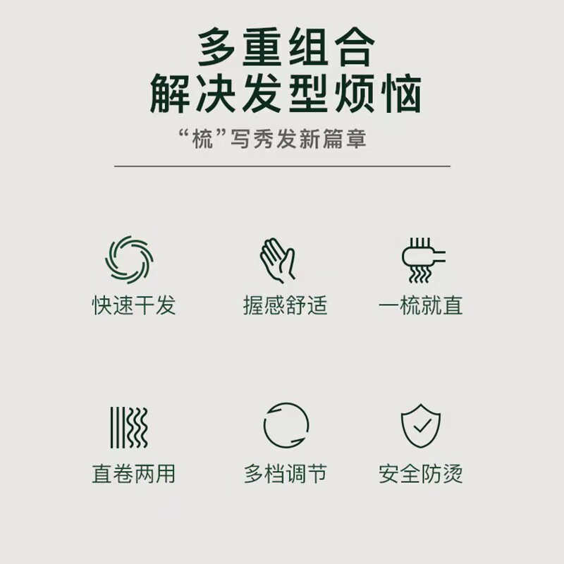 康夫直发梳神器负离子懒人风梳不伤发内扣卷直发棒去油吹风机3136 - 华胜电器