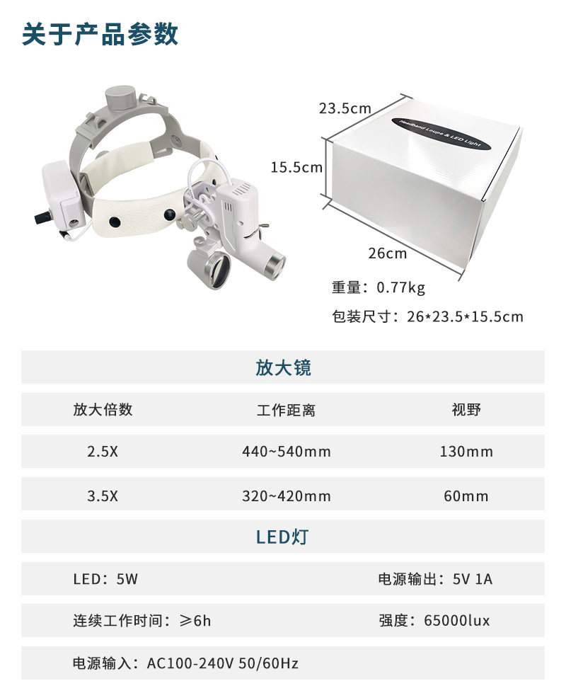 牙科 口腔医用头戴式放大镜+LED灯 骨科外科手术便携式医用放大镜 - 爱齿ICDEN医疗器械店