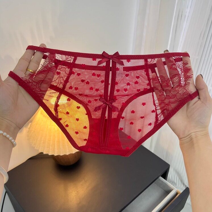 日系性感纯欲蕾丝女士内裤低腰镂空诱人蝴蝶结三角裤红色本命年 - 甜崽心heart